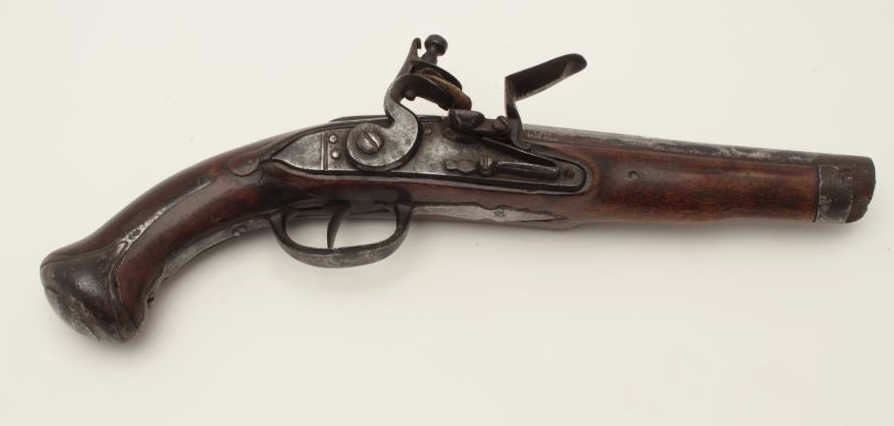 Lot 111 Northern European or Scandinavian flintlock military style pistol from mid-18th century showing sm