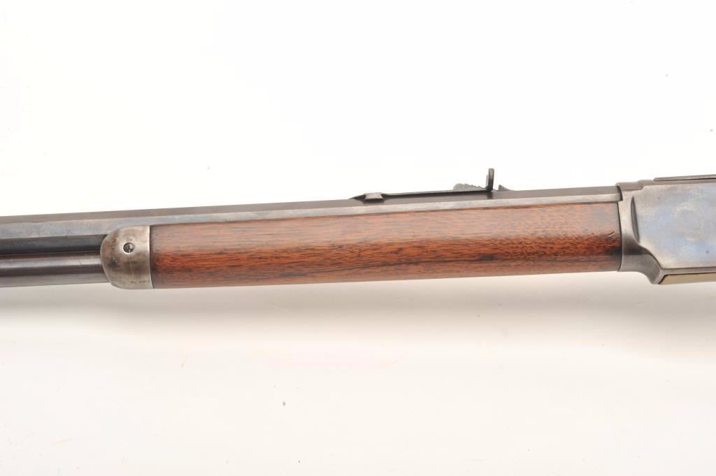 Winchester Model 1873 lever action rifle, .38 W.C.F. caliber, 24” octagon barrel, wood stocks, lightly re-finished, S/N 242908B, in overall good condition with a good action and markings, good wood and clean bore.(Antique). Est.: $1,200-$2,400.