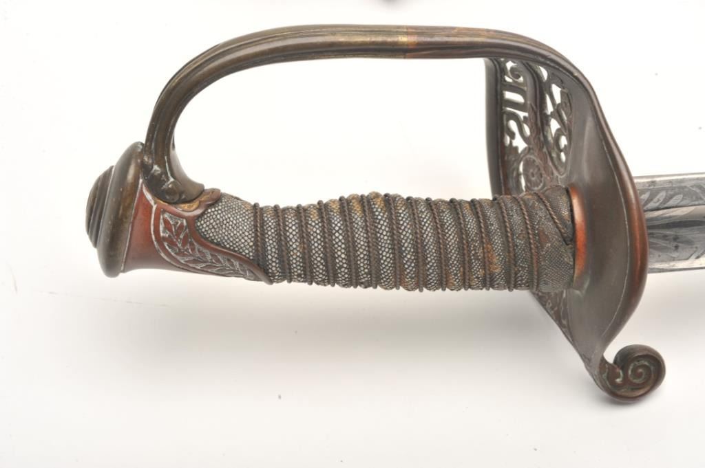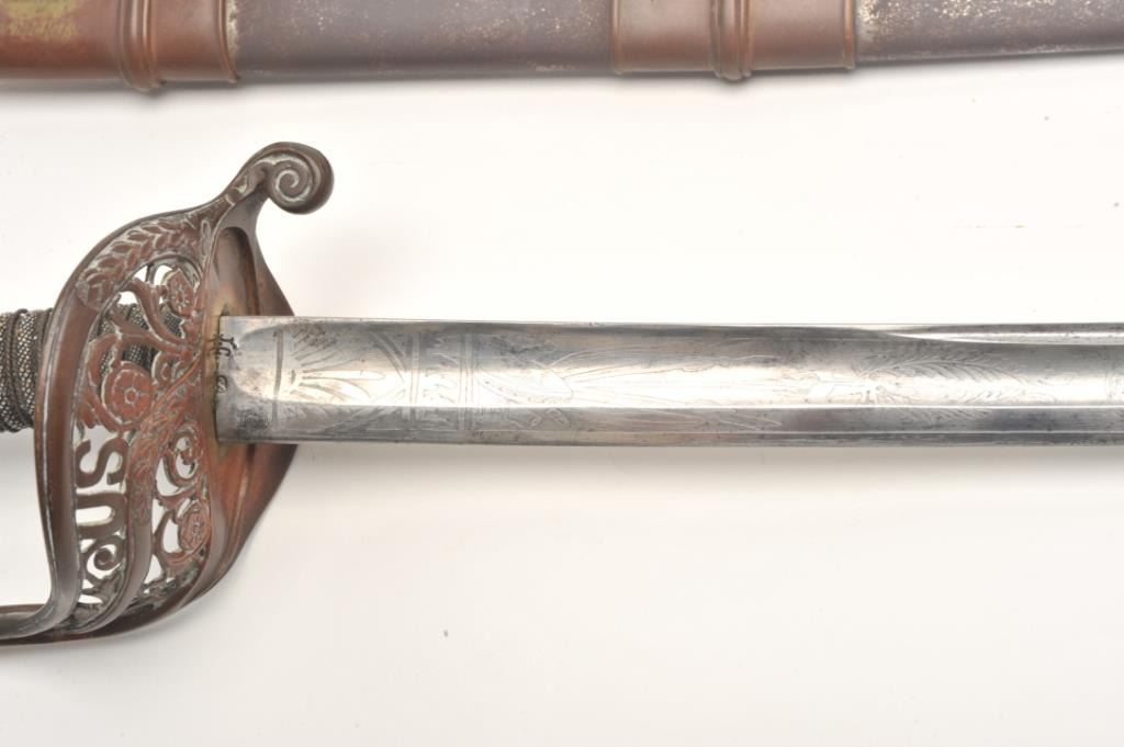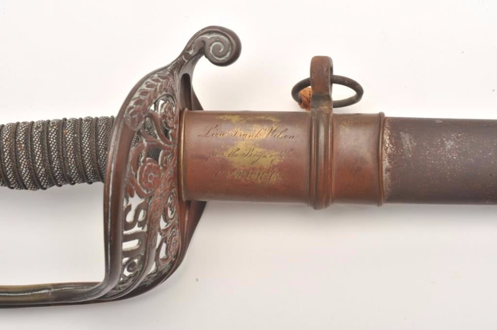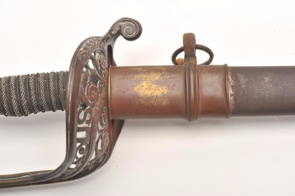 Lot 117 Officer’s sword and metal scabbard period inscribed “Lieut Frank Wilson/from the boys of the/C. &