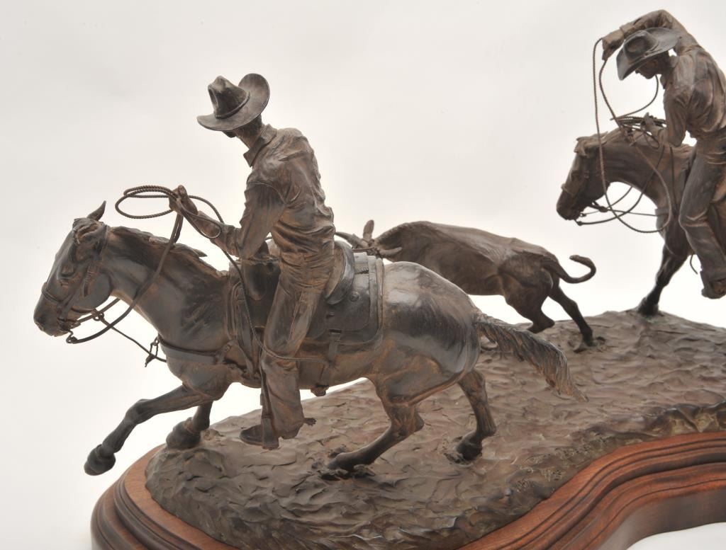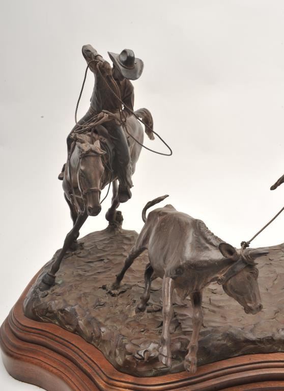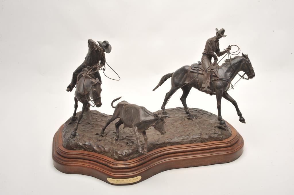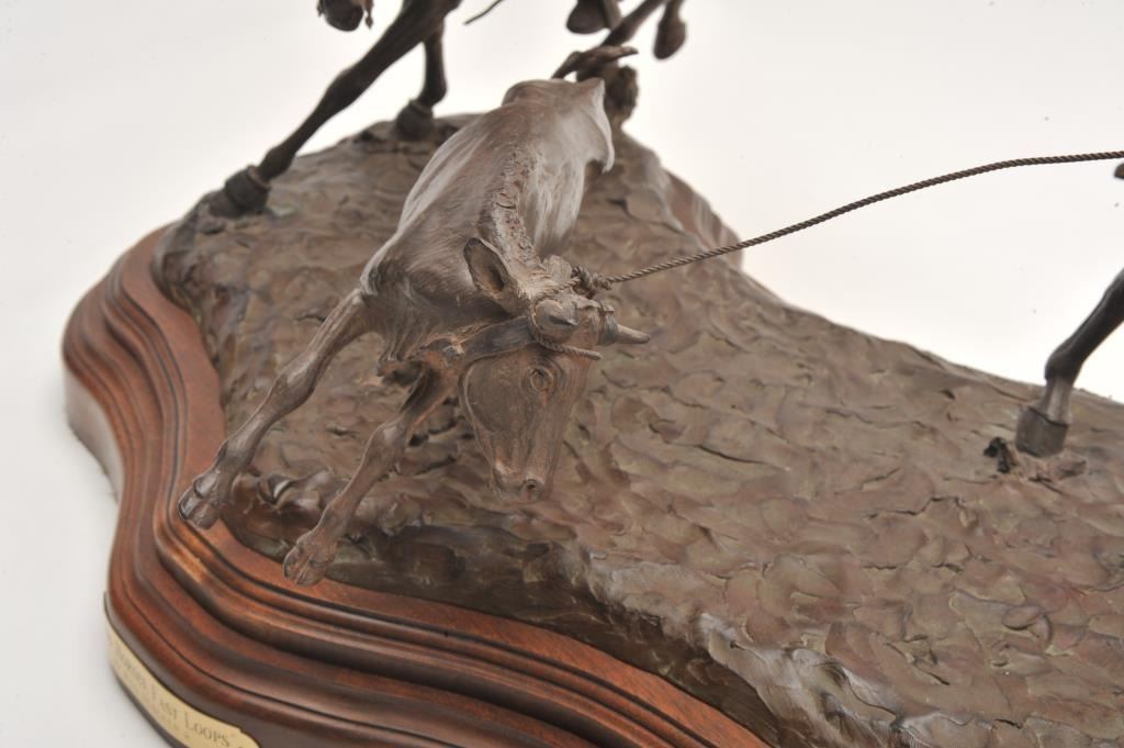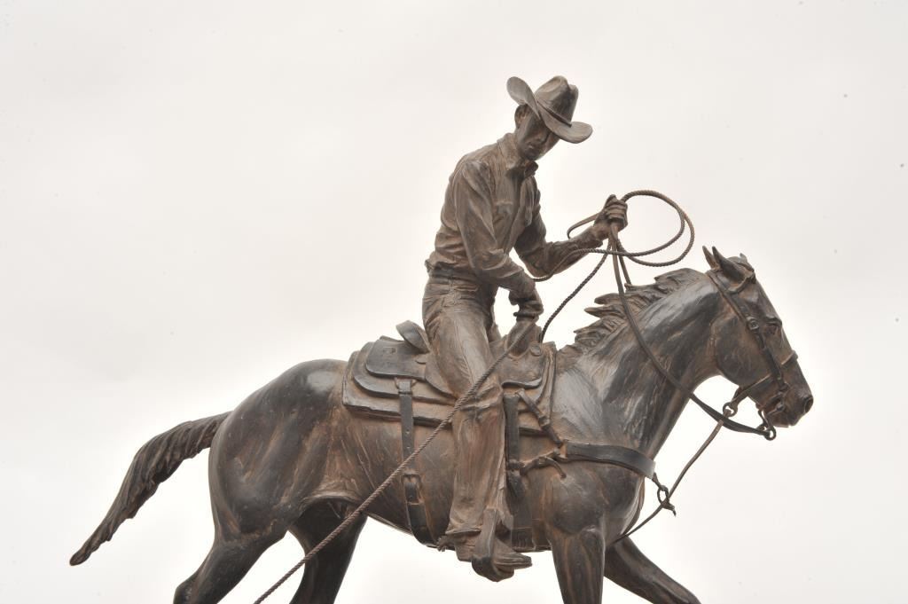 Lot 136 Original bronze entitled “Good Horses, Fast Loops” by Bill Nebeker, approximately 17” in height in