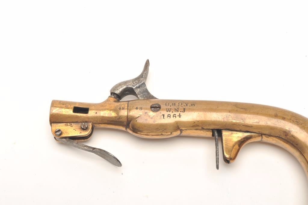 Lot 150 Rare Civil War issue U.S. Martial flare gun marked “U.S.O.Y.W., W.N.J.” inspections with 1864 date