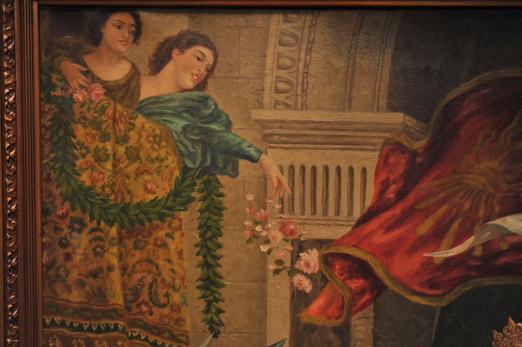 Original oil painting on canvas entitled “Return from the Crusade” signed lower right “A. Regli”. Measures approximately 53 ½” x 41 ½”. Alver Regli the artist was an Italian born artist with an intriguing story. As a young man he fled Verona, Italy after the murder of a fair lady of prominence under suspicious circumstances. A newspaper article contends this lady “Stella” was an obsession of Regli who painted a nude oil of her that was displayed at the Chicago World’s Fair in 1893. The painting was signed “Nani” but Regli claimed he was the artist. Stella sold for $100,000 to John T. Molligan an early collector at the turn of the century. Regli painted 3 copies from memory to prove the artwork was his. For practical reasons he declined to prove he was the artist although it would have made him world famous as this painting drew huge crowds in 1893. He was quoted as saying “I know it in my heart, it is enough.” Regli lived in Los Angeles for many years having a studio near second and Broadway in L.A. in the 1930s and ran an art school. He restored master works and in a 1930 L.A. Times article it reveals he was a student of Prof. Nani. Apparently Nani took credit for his work “Stella” which it is supposed Regli had Nani sell as his agent due to his being a fugitive from Italy. The photos and articles of happy Koomer, night club owner, and well known L.A. collector with this painting included. Also a copy of advertisement selling this painting along with Koomer’s collection Feb 13, 1973 by E.C. Jenkins. This painting fetched $5,000 43 years ago to a prominent Huntington Beach, CA collector and obtained from his estate. In conclusion we feel this to be a master work by a great artist who chose to “hide out” rather than gain recognition from painting “Stella”. The condition is near excellent in period (1930s) frame. Just light cleaning necessary. Est.: $10,000-$20,000