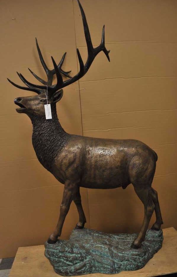 Elk bronze on base measuring approximately 75” in height by 4 feet across the base. Unsigned but nicely detailed. Compare in galleries $3500-$7000. Opening bid $1000