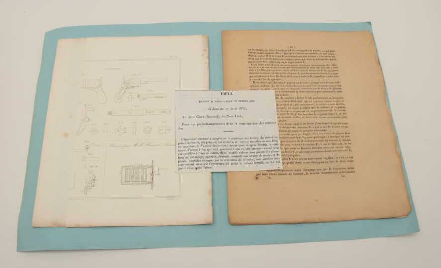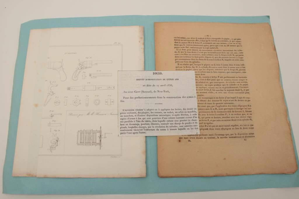 Lot 153 Original French patent documents for Colt Paterson pistols and long arms featuring revolving cylin