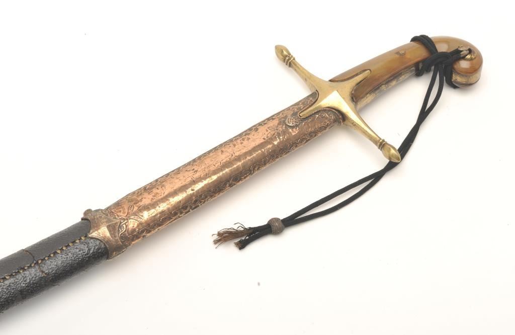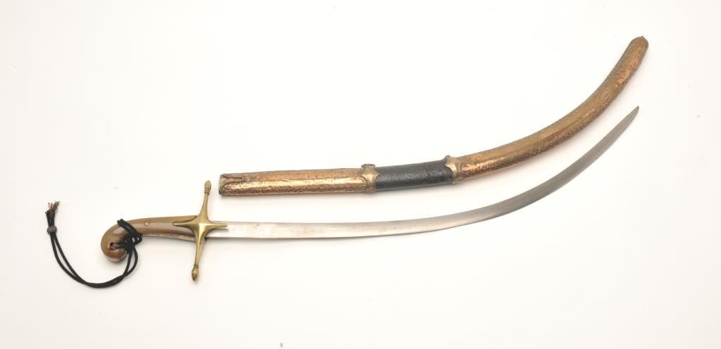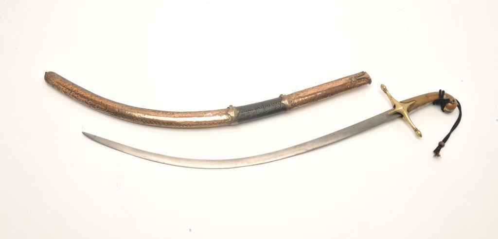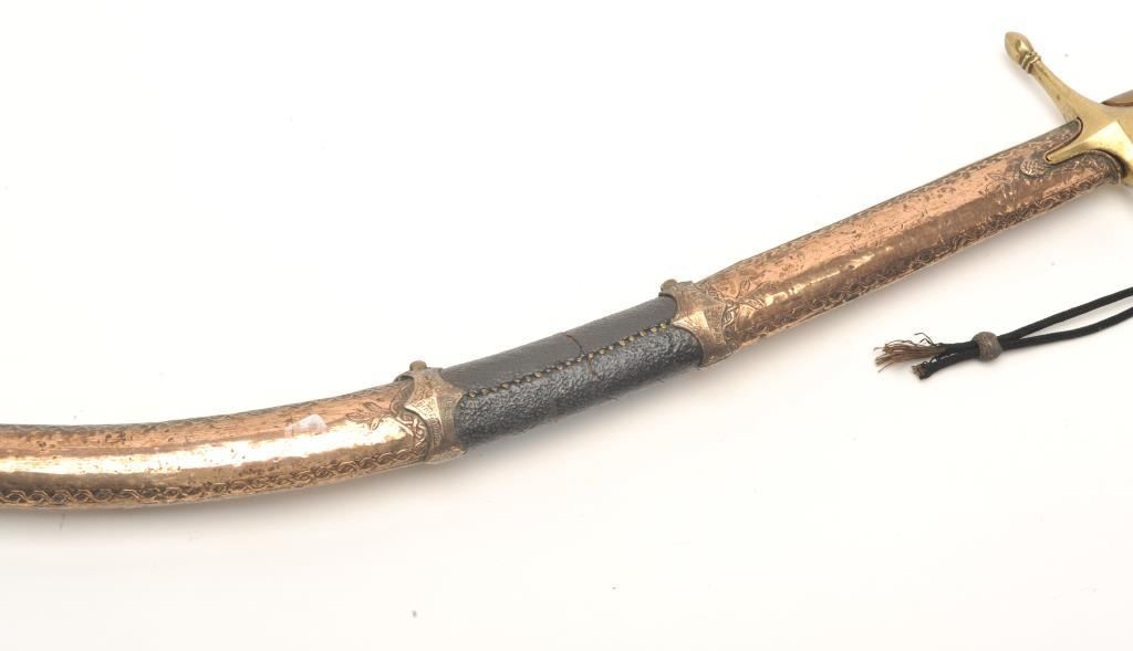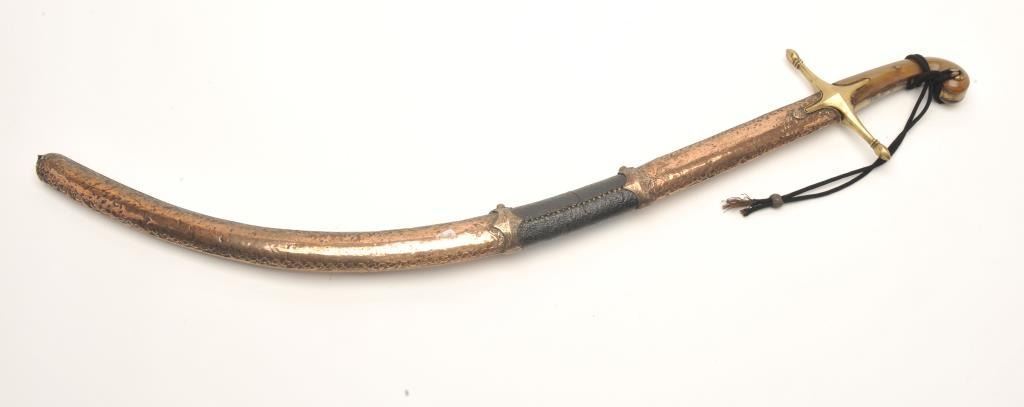 Lot 160 Fine quality Mid-Eastern sword with gilt over silver mounts and horn grip circa 1800-1900. Good cl