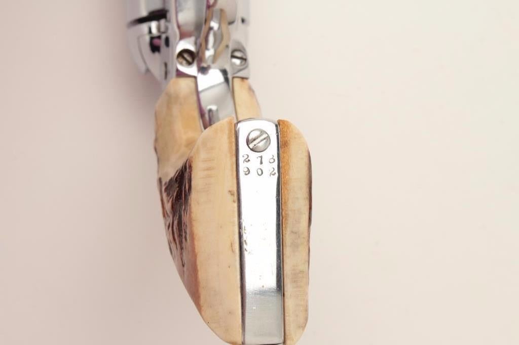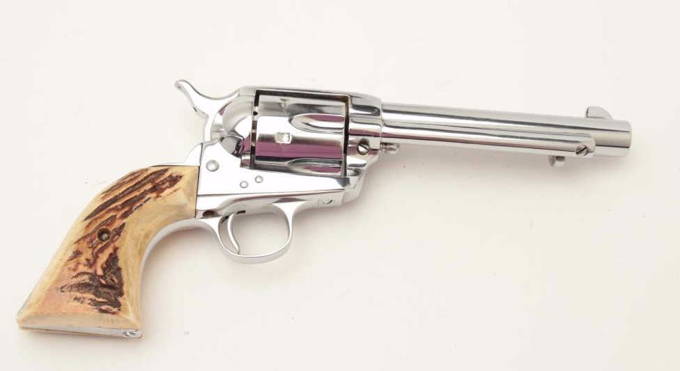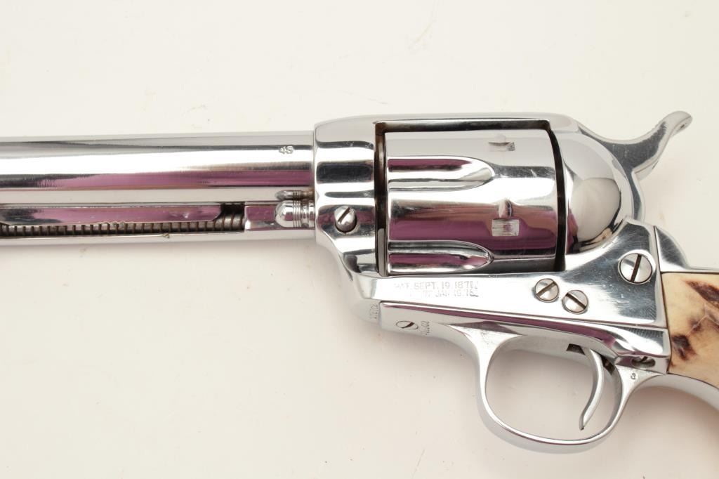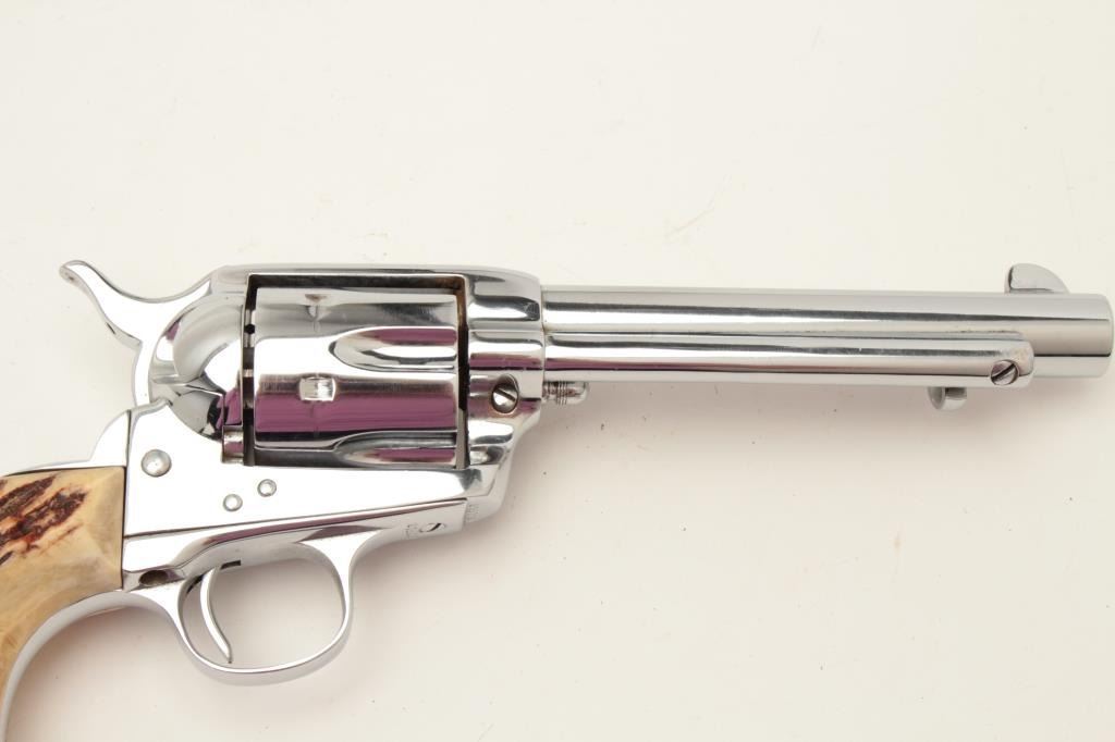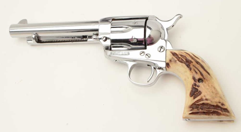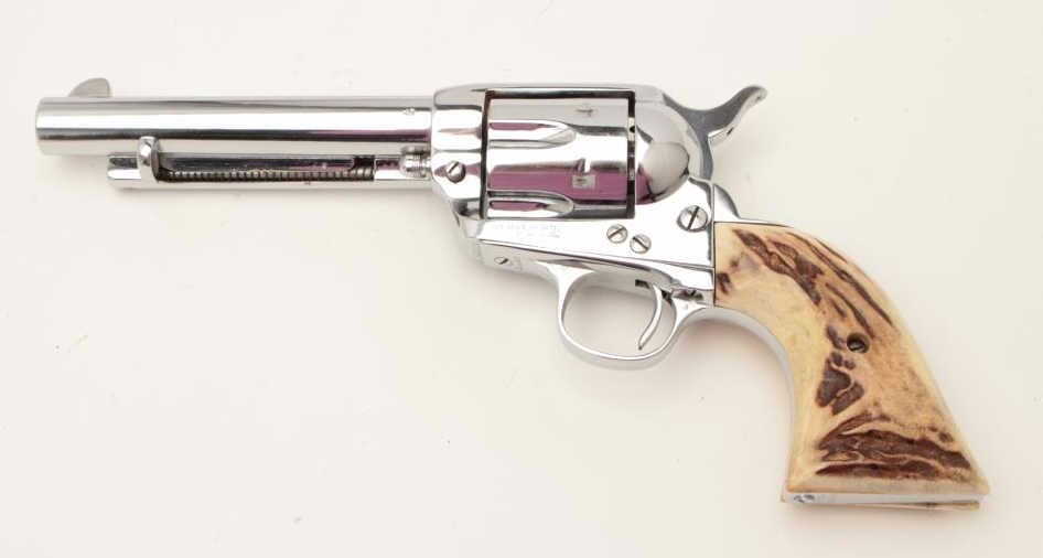 Colt SAA revolver, .45 caliber, 5.5” barrel, S/N 278902, in overall good condition as restored with re-nickeled finish, thick stag grips, crisp action and good bore. (C&R/PPT). Est.: $900-$1,800.