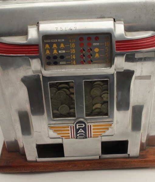 Lot 182 Pace Comet 5 cent slot machine, ca. 1930’s; approximately 25” in height, 17” wide and 15” deep, on