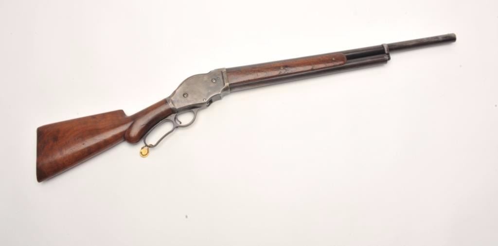 Lot 191 Historic Winchester Model 1887 lever action shotgun, 10 gauge, barrel period shortened to 24”, blu