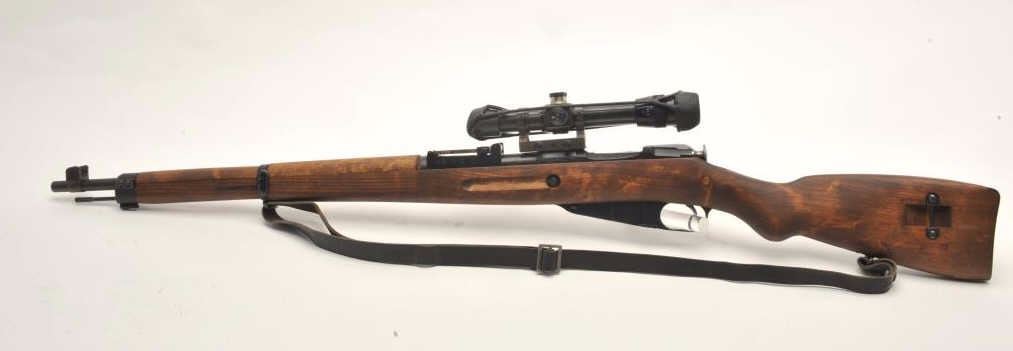 Lot 214 Finnish Nagant bolt action rifle, import-marked, with scope displaying crisp Zeiss optics, Russian