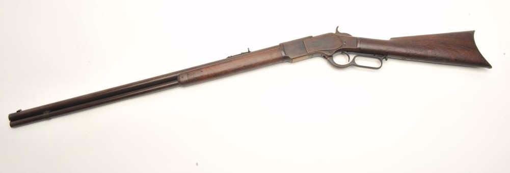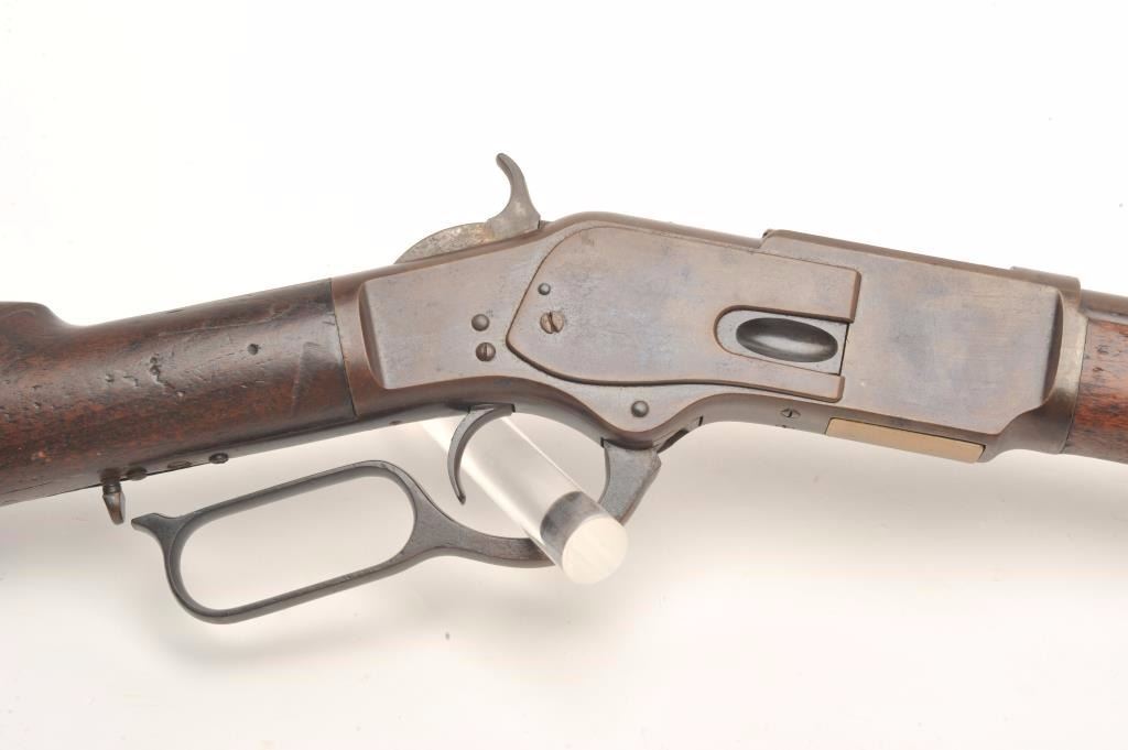 Lot 223 Winchester 1st Model 1873 lever action rifle, .44-40, 28” round barrel, plain trigger, wood stocks
