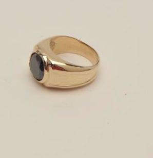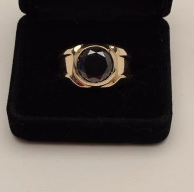 One men’s ring in 14k yellow gold set with a 5.7ct round brilliant cut black diamond Est:$3,000-3,500