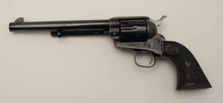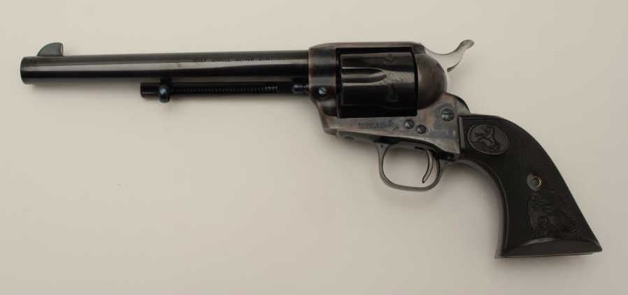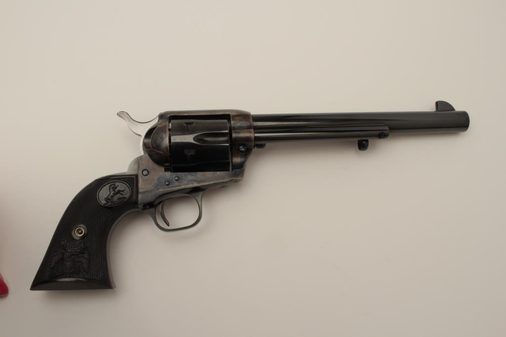 Lot 250 Colt 4th Generation SAA revolver, .45 caliber, 7.5” barrel, blued and case hardened finish, checke
