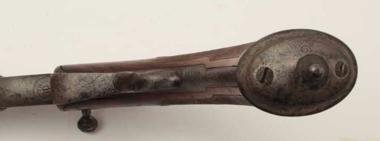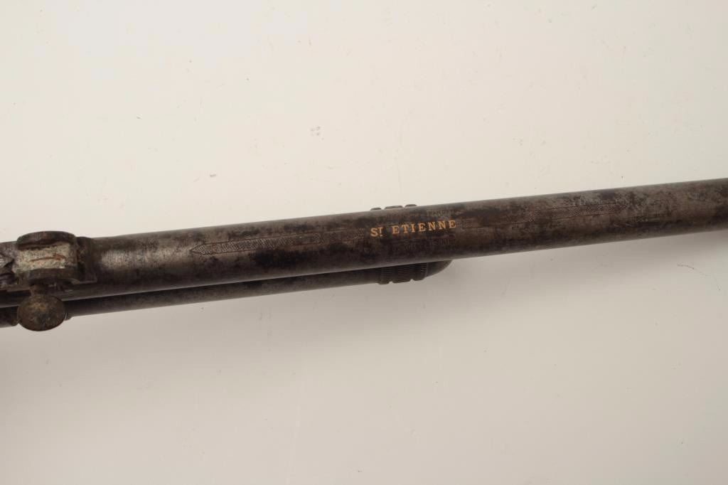 Lot 260 High quality French 19th century air pistol inlaid in gold “St. Etienne on the barrel. Approximate