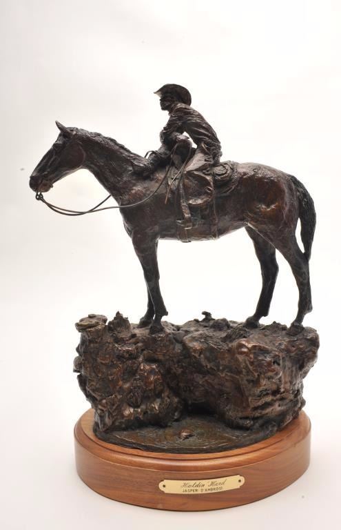 Lot 263 Original bronze entitled “Holdin’ Herd”, #7/40 by well-known artist Jasper D’Ambrosi, approximatel