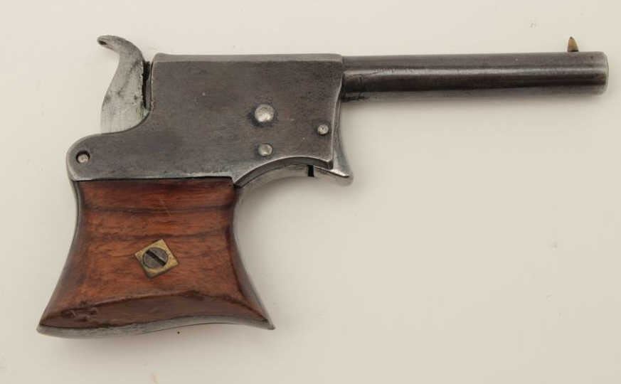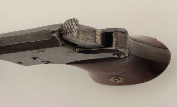 Lot 269 Remington Saw Handle derringer, .22RF caliber, 3.25” barrel, blued finish, wood grips, no visible