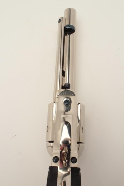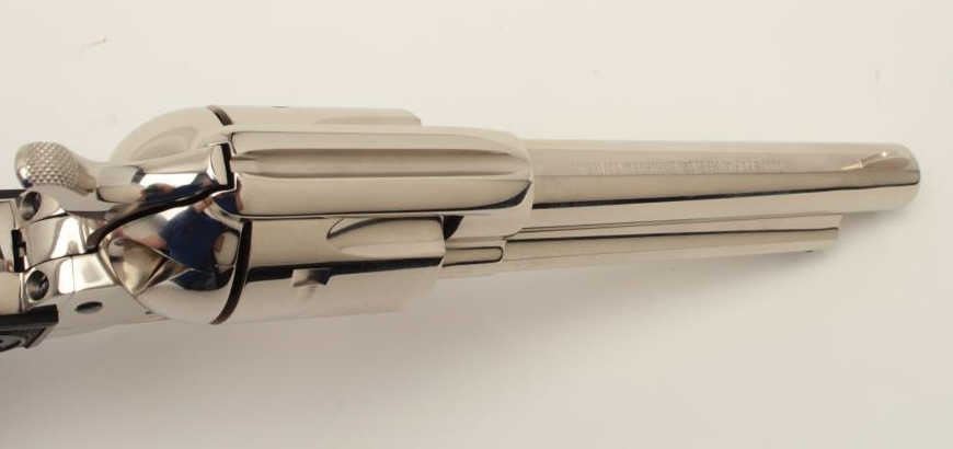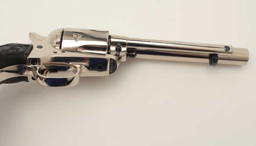Lot 275 Colt SAA revolver, .45 caliber, 5.5” barrel, nickel finish, checkered black eagle grips, S/N S5772