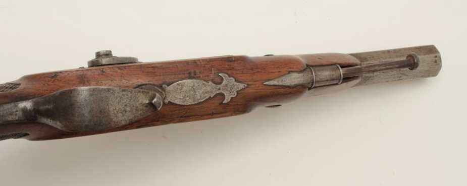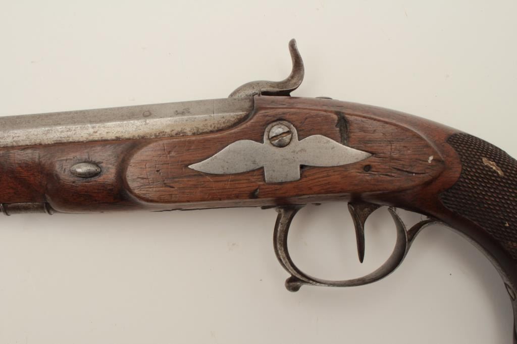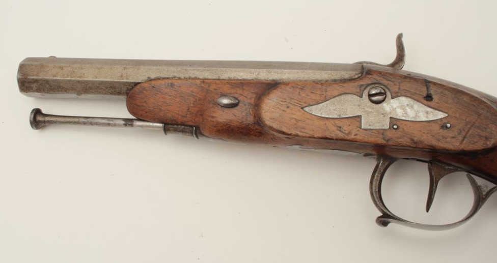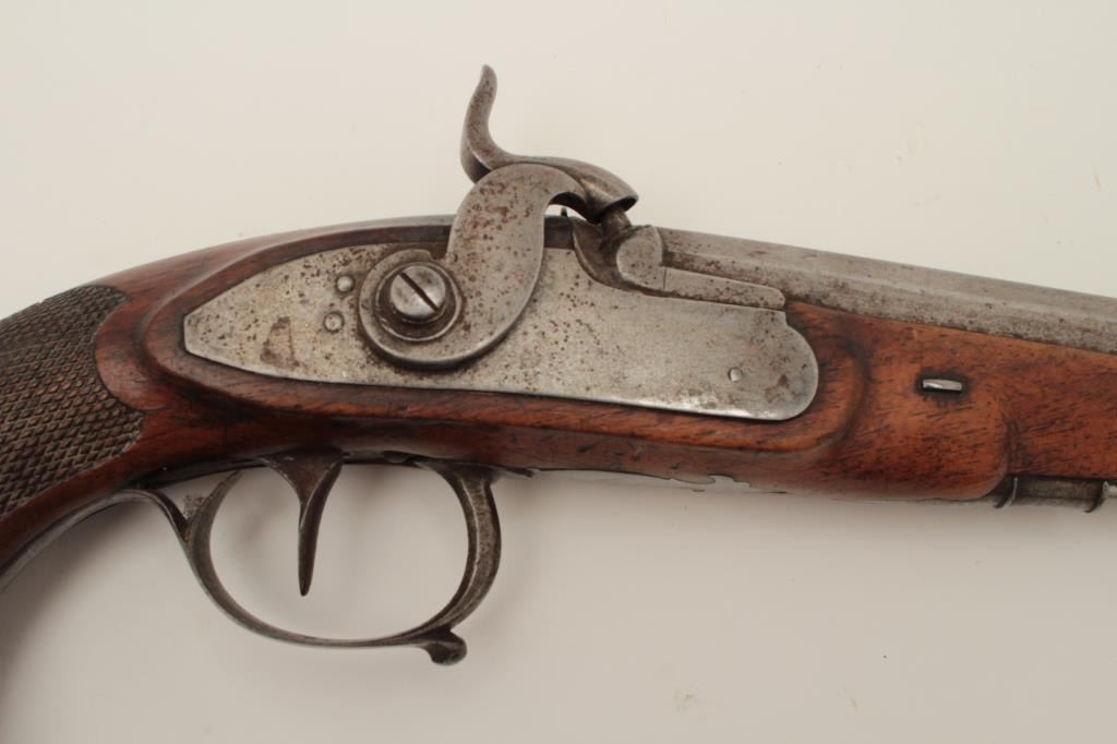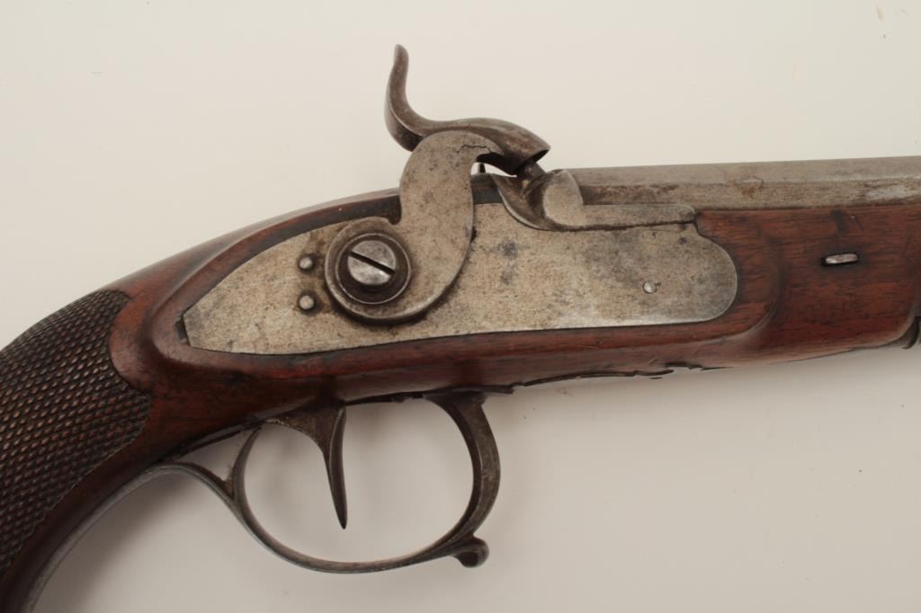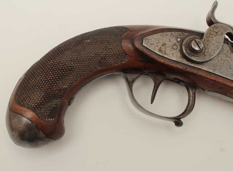 Lot 297 Pair of percussion French pistols, each approximately 13” overall with 7” barrels, checkered wood