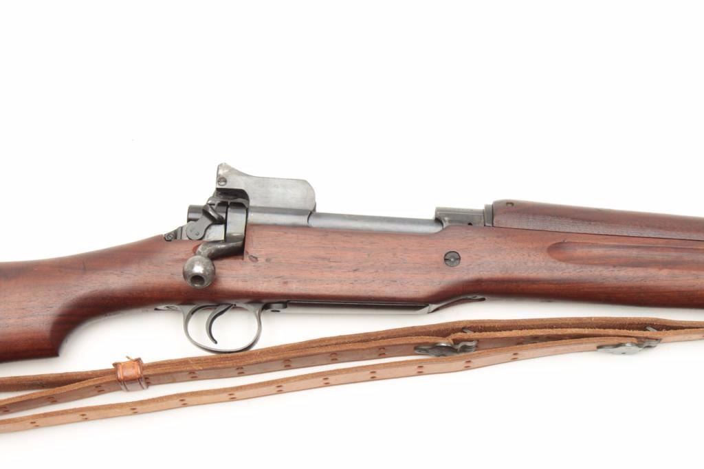 U.S. Model 1917 bolt action rifle by Eddystone, .30-06 caliber, 26” barrel dated 9-18, military finish, wood stock, leather sling, S/N 1066682, in overall very good to fine condition with a fine bore, crispaction, sharp markings and very good wood displaying 2Z and eagle head proofs behind trigger guard. (C&R). Est.: $400-$800.