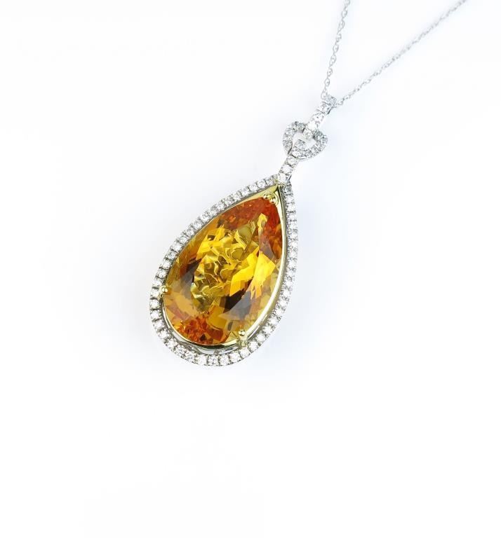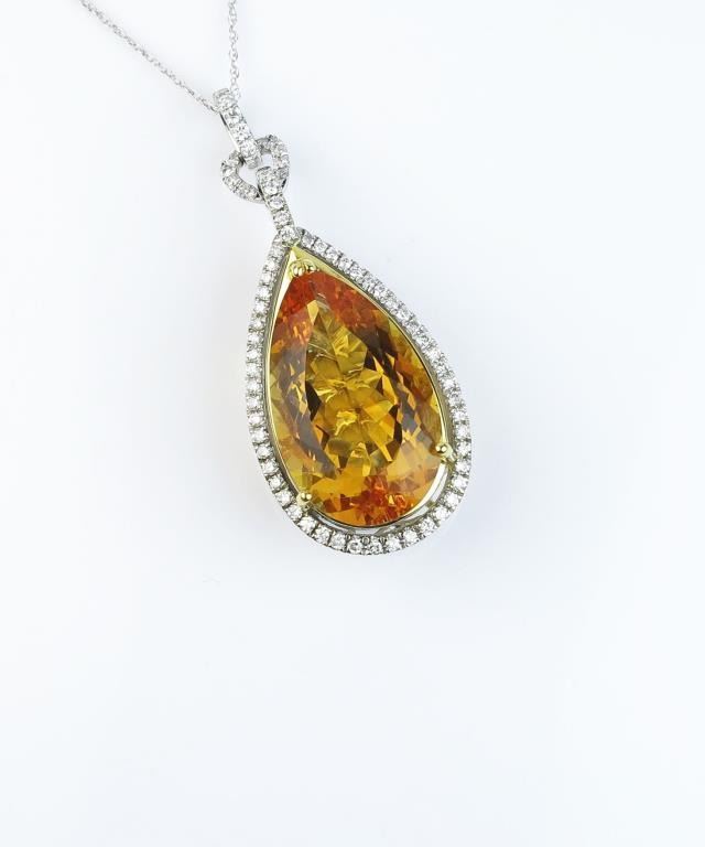 Lot 326 Gorgeous ladies necklace featuring a large Pear shape Citrine weighing approx. 20.00 carats and mi