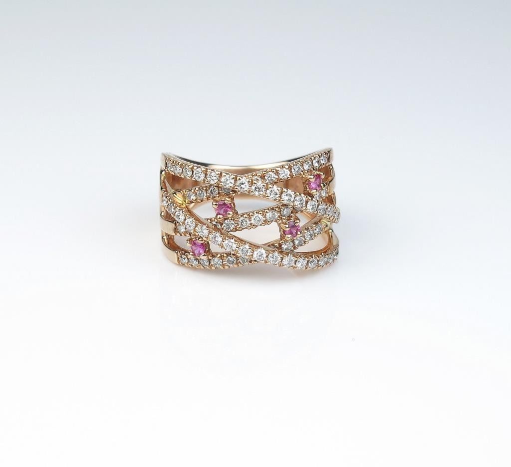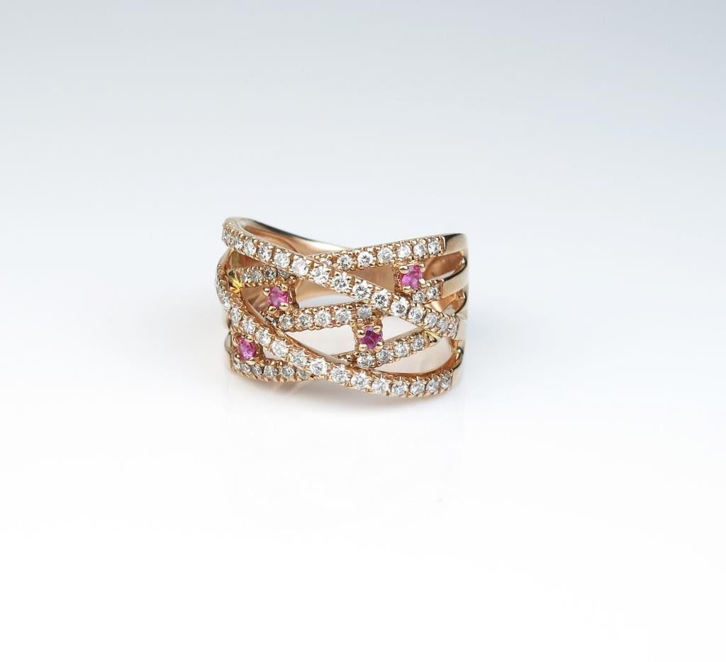 Exceptional ‘EFFI’ custom made ring set with over 72 round diamonds and rubies with a combined weight of approx. 1.50 carats of mostly H-I colors and SI clarity set in a 14 karat rose gold custom made setting. Retail$3,999.00 Estimates $2,000-$3,000 Nice