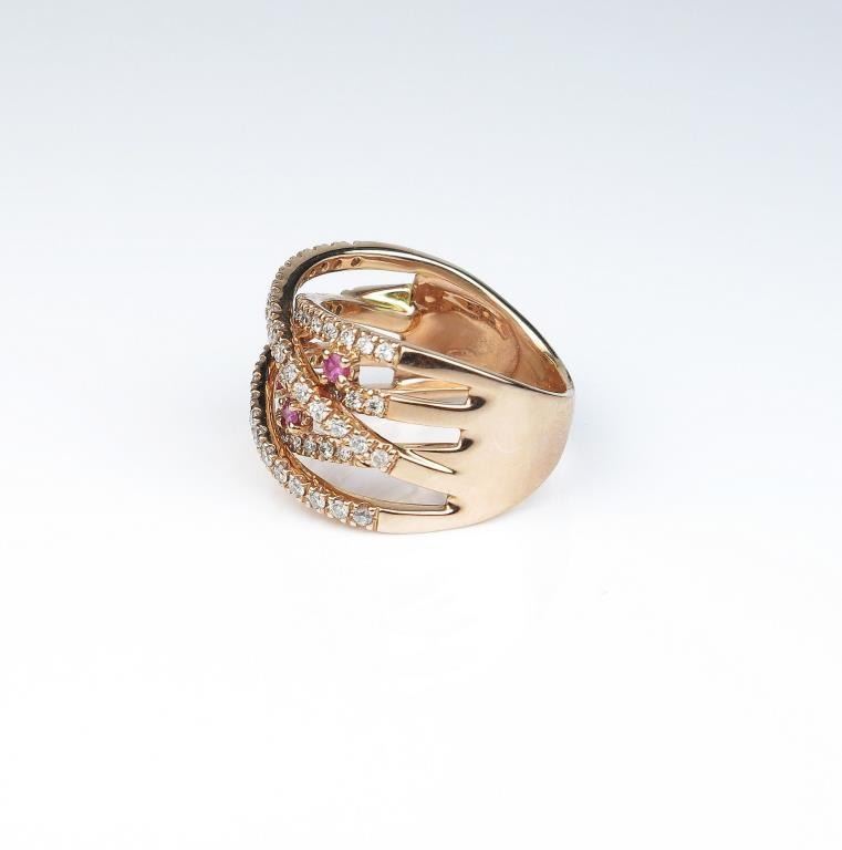 Lot 327 Exceptional ‘EFFI’ custom made ring set with over 72 round diamonds and rubies with a combined wei