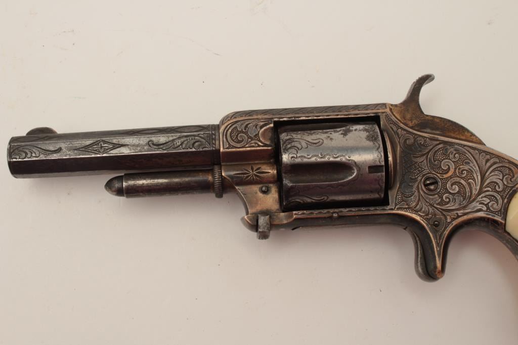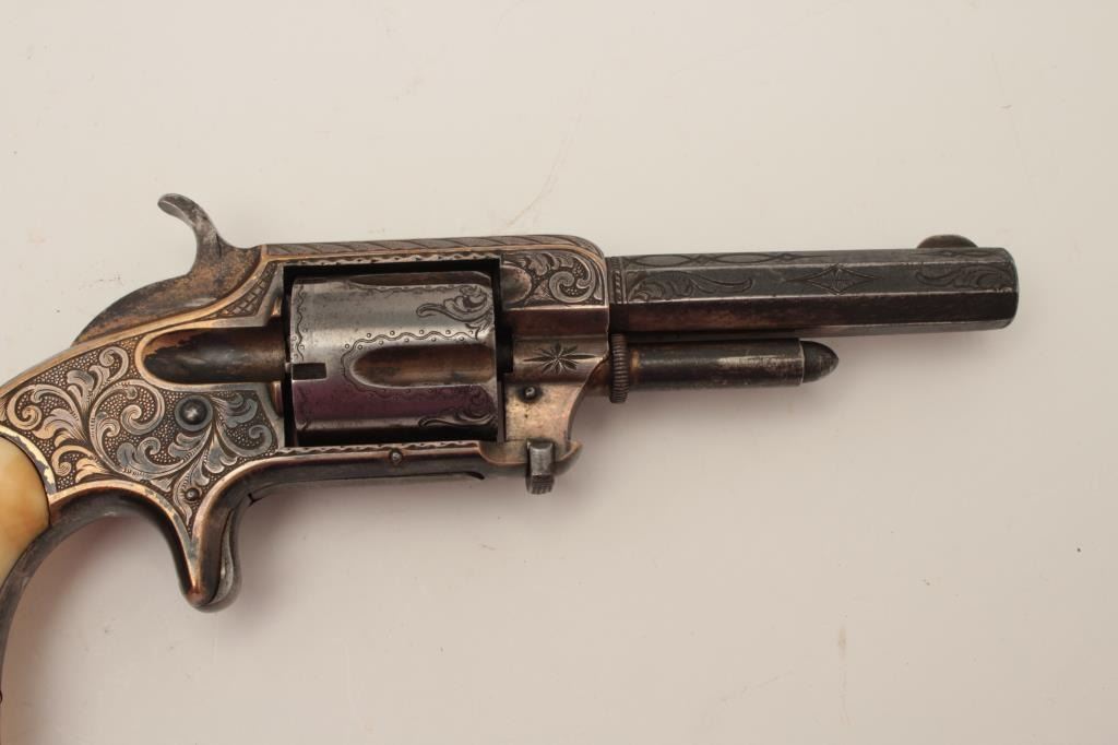 Lot 336 Whitneyville 5-shot .32 caliber spur trigger revolver, 3.25” barrel, nickel, fully deluxe N.Y engr