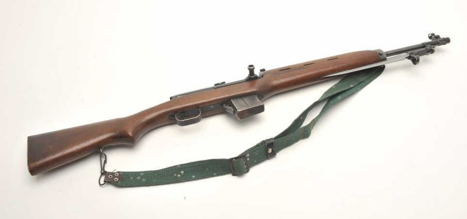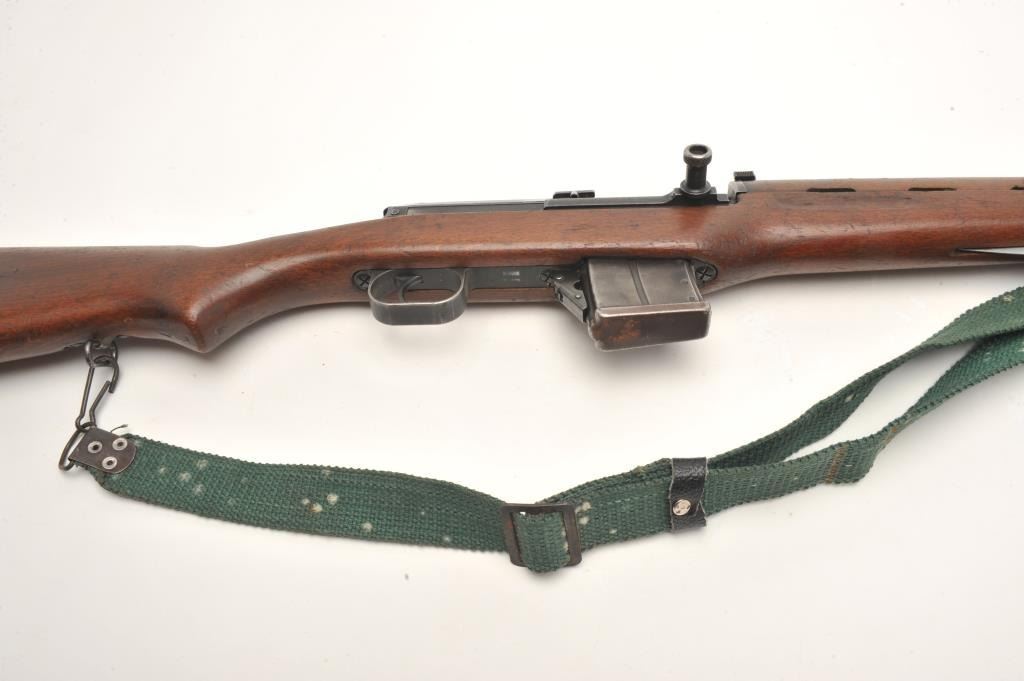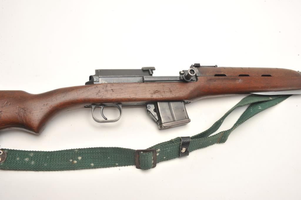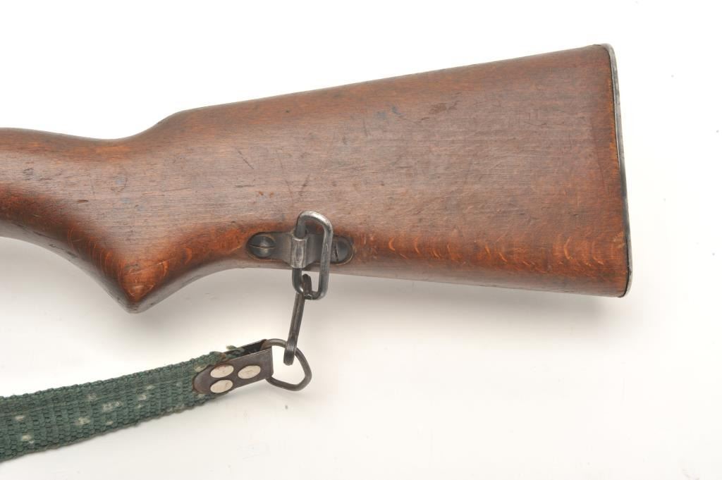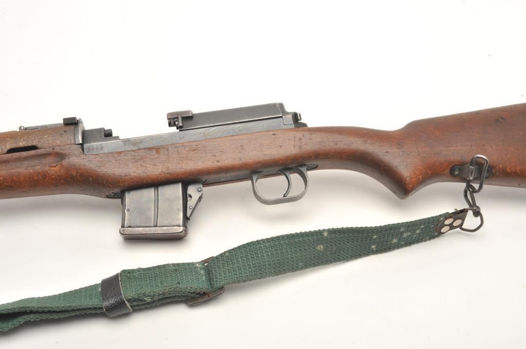 Egyptian Rasheed semi-auto carbine, 7.62 x 39 caliber, serial #3022. The carbine is in good overall condition with a 20” barrel with hooded front and military tangent rear sights. The barrel and receiver retain asignificant amount of their military finish. Built by Hakim, the Rasheed combines the design of the Swedish AG42B Ljungman with the more modern SKS carbines. The smooth wood stock is in good condition showing moderateuse with mars and dents. The carbine includes a proprietary folding bayonet. The bore is poor with heavy pitting noted, the action crisp and markings are sharp. The Rasheed were limited in production, with some estimates as low as 8,000 and are rarely encountered. The lot includes one correct magazine and a canvas sling. (Modern) Est.: $400-$800.