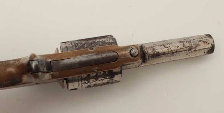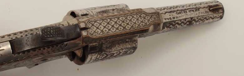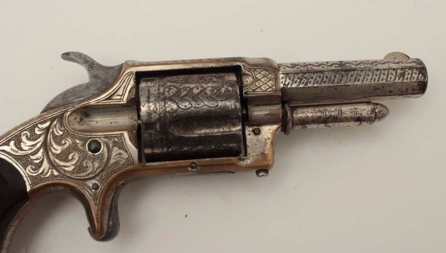 Lot 354 Whitneyville .32 caliber spur trigger revolver, 2.5” octagon barrel, nickel finish, deluxe engravi