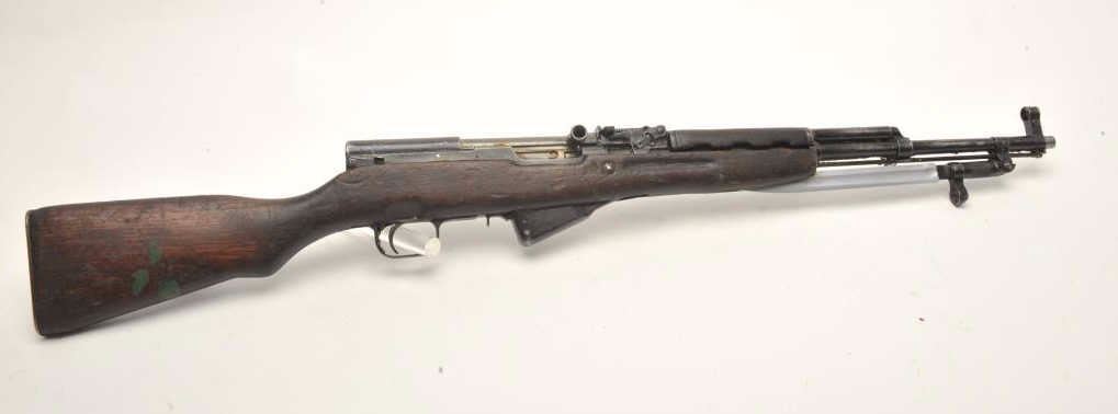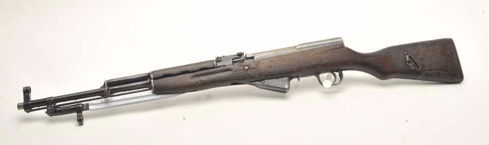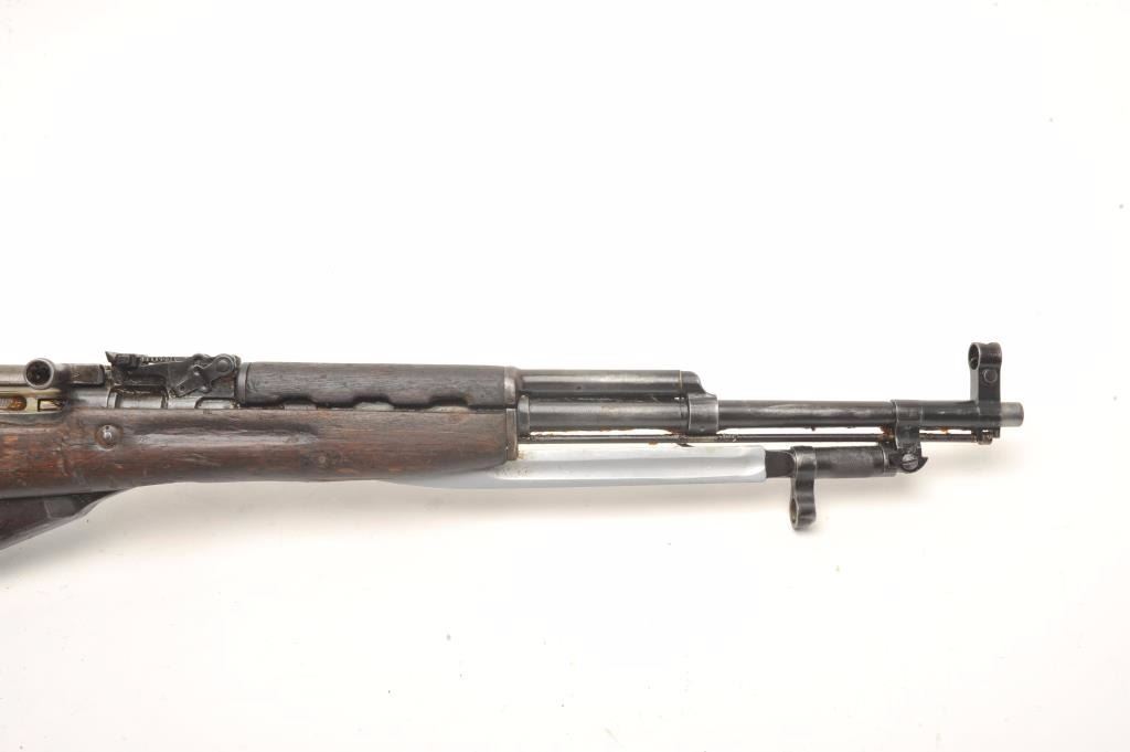 Lot 357 Russian SKS semi-automatic rifle, 7.62 x 39 caliber, 18.5” barrel, military finish, wood stock, fo