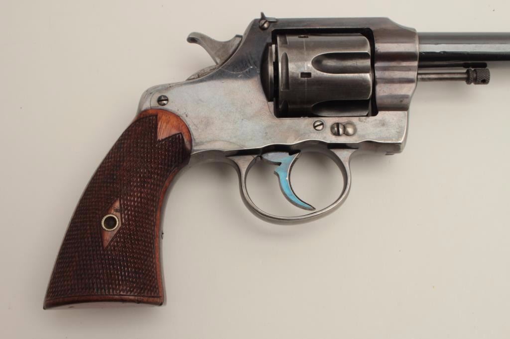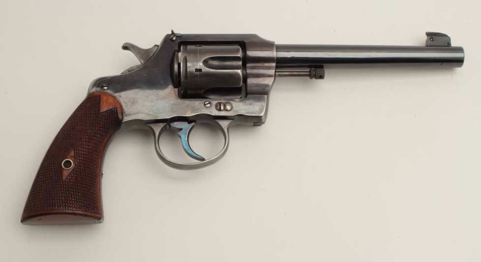 Lot 358 Colt Officer’s Model flat top target DA revolver, .38 caliber, 6” barrel, blued finish, checkered