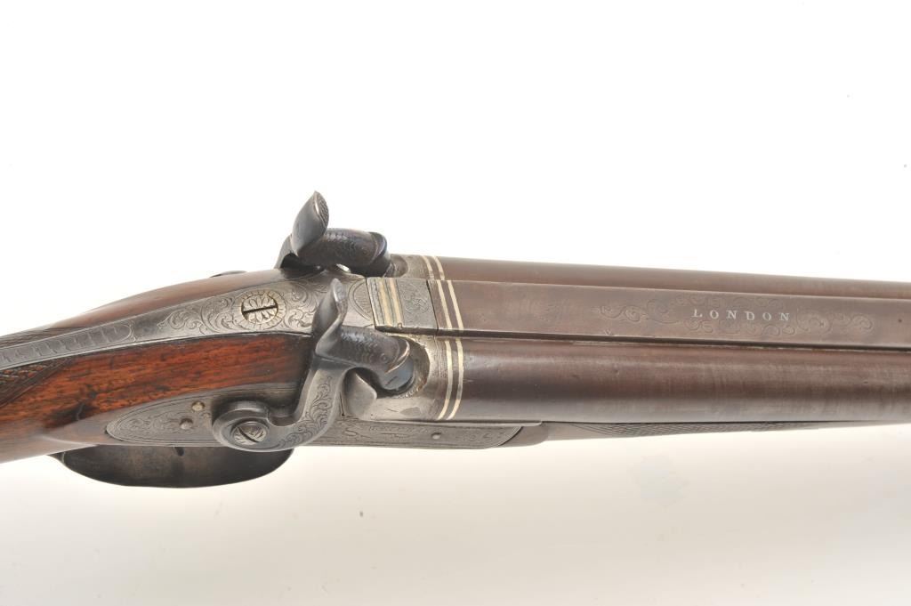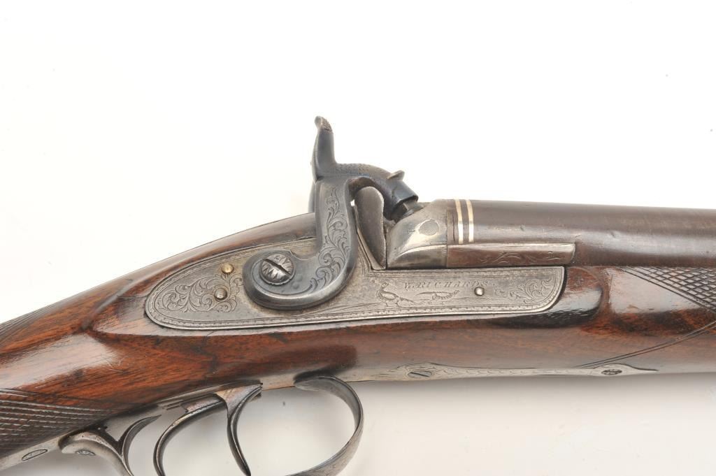 Lot 366 “W. Richards London” signed percussion SxS shotgun in 12 GA smoothbore with thick barrels and rais