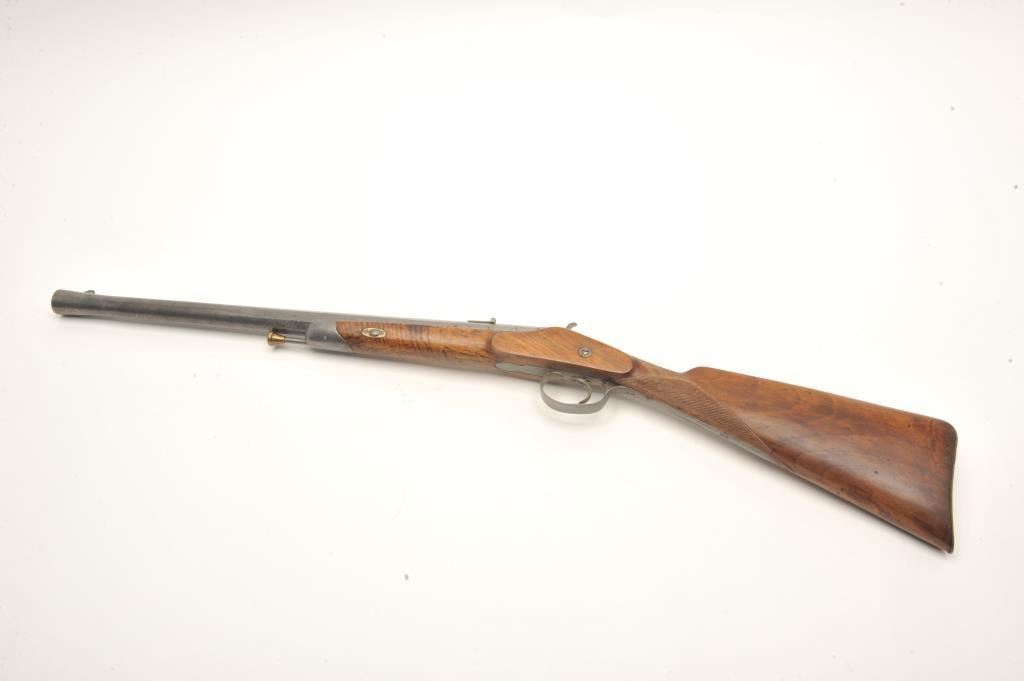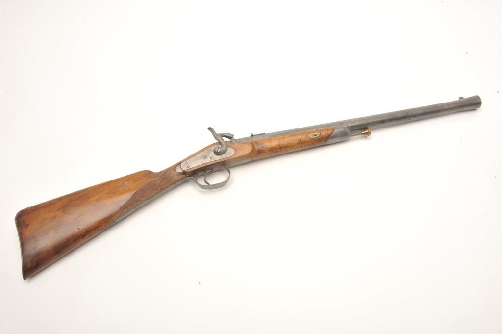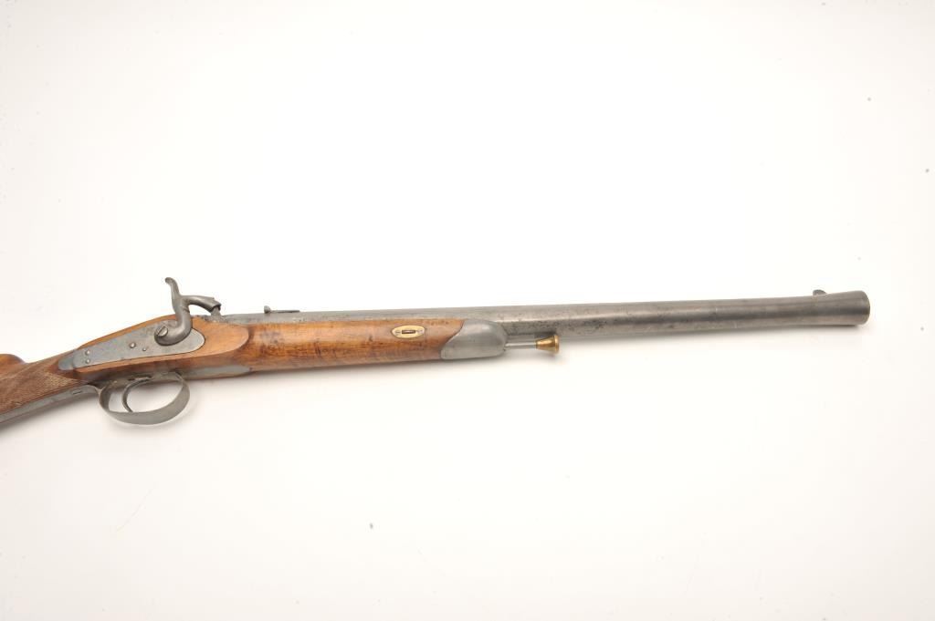 Lot 368 Cavalry style late percussion carbine probably French with radical flared muzzle. Measures 36 ½” o