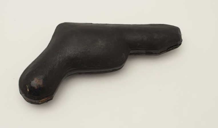 Pipe cased pinfire revolver circa 1860s showing floral engraving and checkered wood grips. Measures 8” overall with a 3 ½” barrel and 7.5m. Light patina finish with slight staining and aging but at least very goodoverall. No maker’s marks and only small Belgium proofs. The action is crisp and works well with small parts and springs retained. The interior of the case shows good velvet lining underneath the pistol but rips andloss to satin in the lid. Half of the Moroccan leather covering is missing from the exterior and wood dyed or painted black. (Antique) Est.: $300-$600
