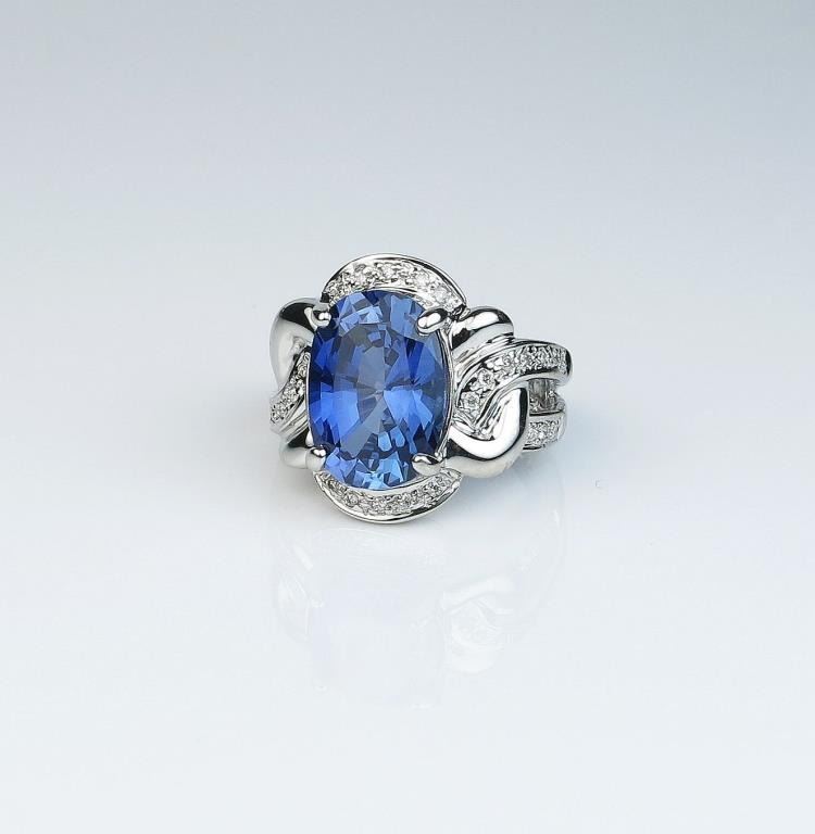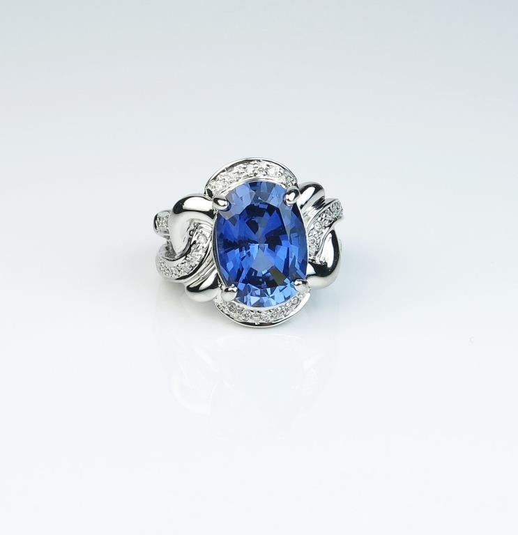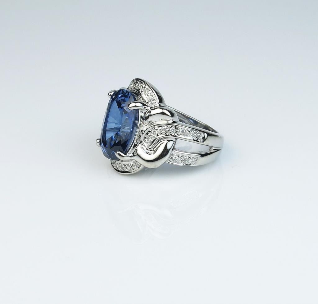 Lot 390 Contemporary design ladies ring set with a created blue Sapphire weighing approx. 7.00 carats high