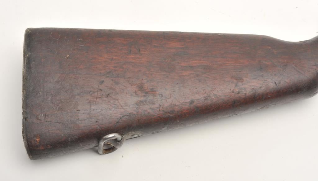 Springfield U.S. Model 1903 bolt action rifle, .30 caliber, serial #811152. The rifle is in good overall condition with a 24” barrel with a blade front and military tangent style rear sights. The barrel andreceiver retain the majority of their military finish with wear at the muzzle and a significant amount of old packing grease evident. The Springfield marked barrel is dated 10-32 with the flaming bomb emblem.The smooth wood stock is dark with mars and compressions consistent with service use. There are several faint cartouches on the underside of the butt stock behind the trigger guard. The stock includes slingswivels and ends with a smooth metal butt plate with trap. The bore is fair, the action is crisp and markings are sharp. The lot includes the CMP certificate of authenticity provided at purchase. (C+R)Est.: $300-$600.