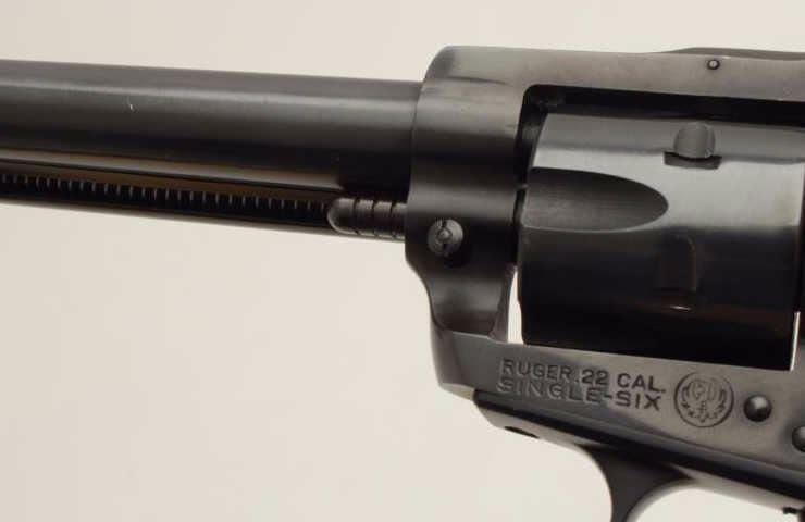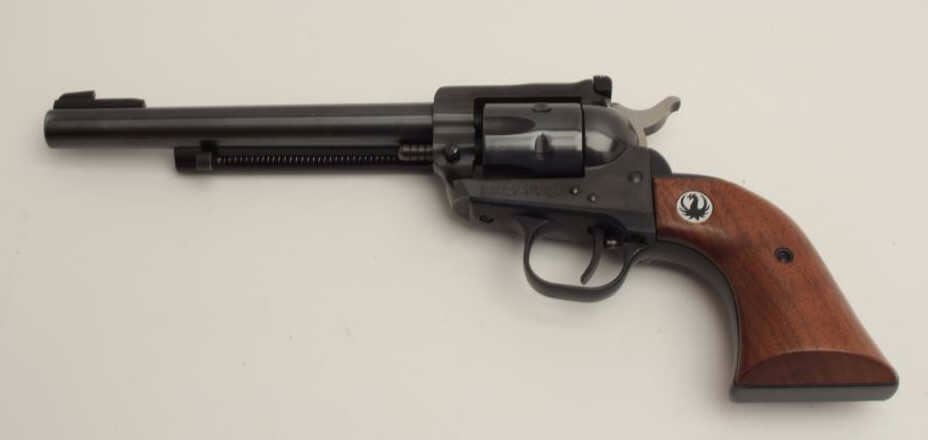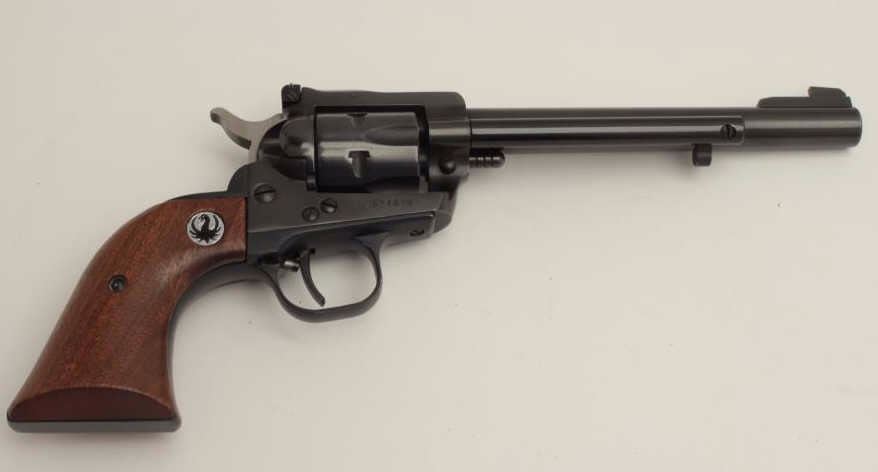 Lot 416 Ruger Model Single Six revolver, .22 caliber, 6.5” barrel, blued finish, smooth wood black medalli