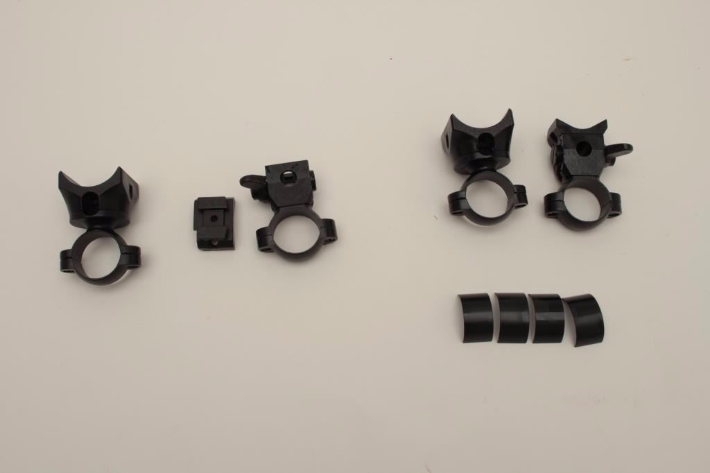 High and Low turret mounts for a 98k Mauser bolt action rifle; vintage Mitchell Mauser items; no longer available. Est.: $200-$400.