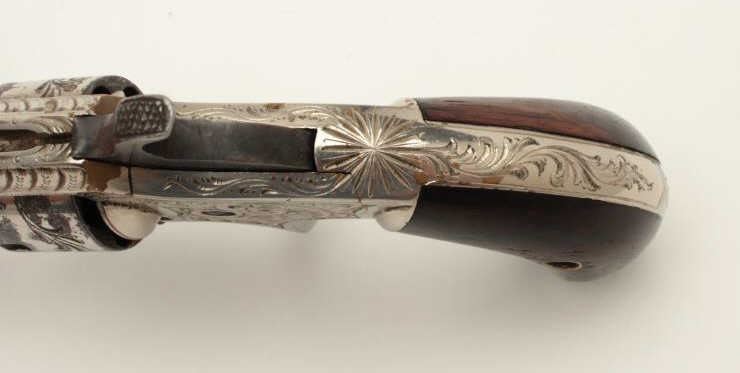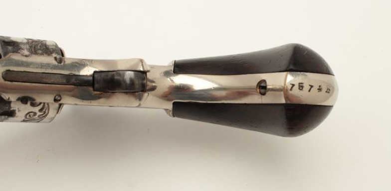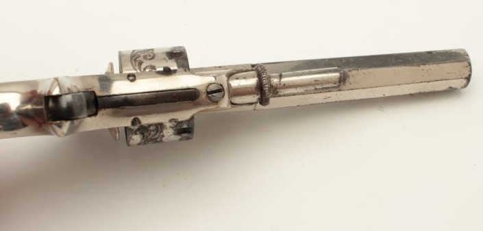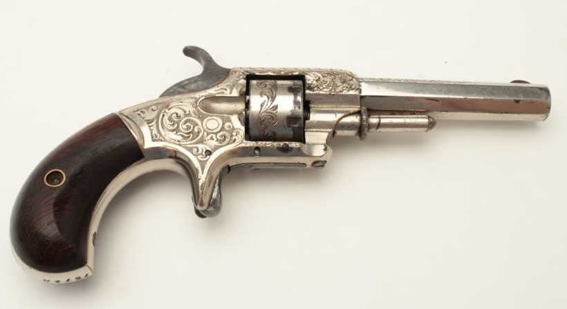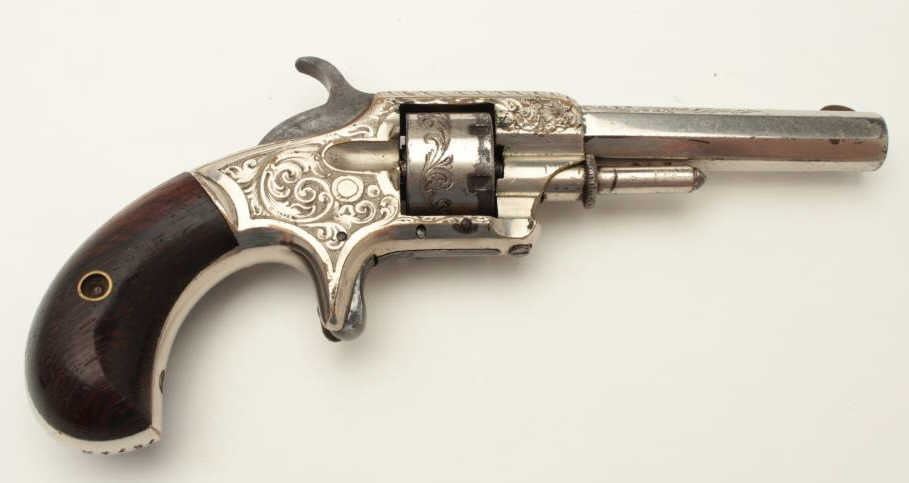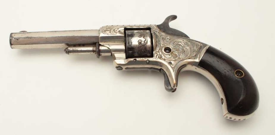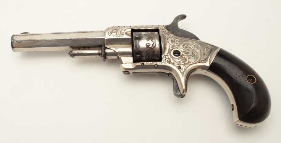 Lot 429 Whitneyville .22 caliber spur trigger revolver, non-fluted short cylinder, engraved, nickel, rosew