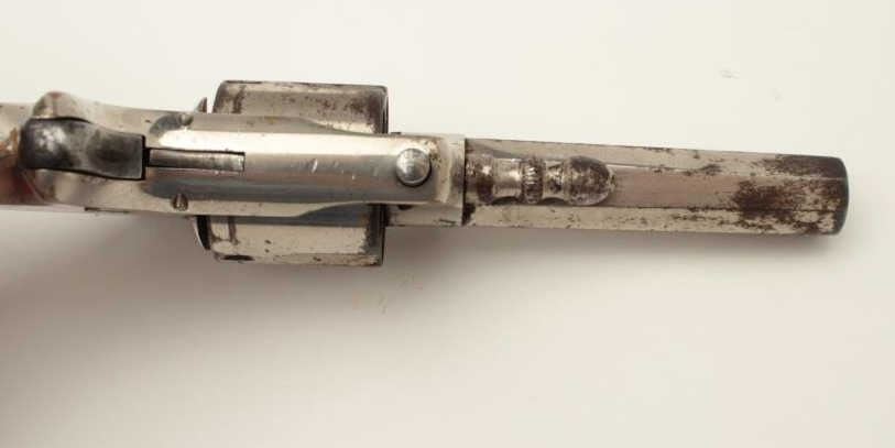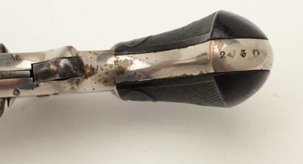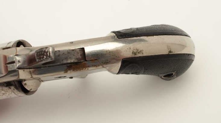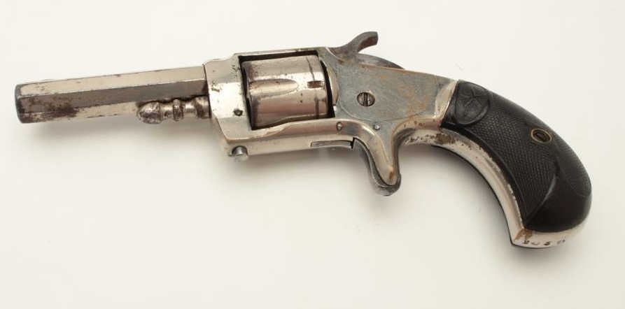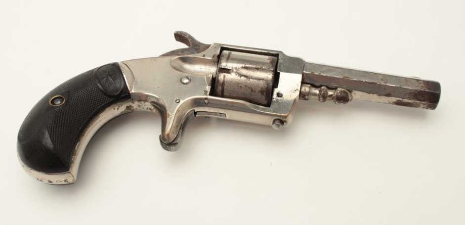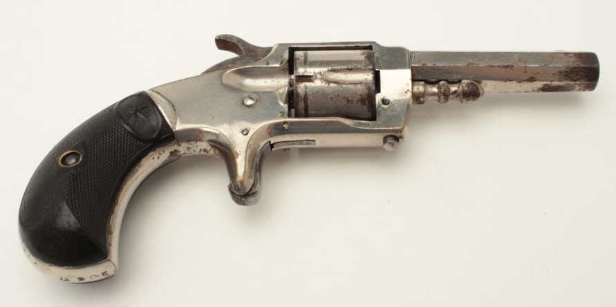 Whitneyville .30 caliber spur trigger revolver, 2.5” octagon barrel, nickel finish, fancy plastic grips, S/N 203D; rare in .30 caliber; overall very good condition. (Antique). From the Whitney familycollection. Est.: $300-$600.