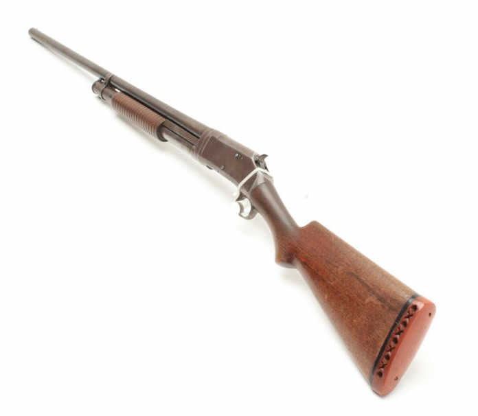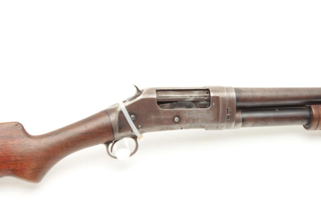 Lot 484 Winchester Model 1897 pump shotgun, 12 gauge, serial #539724. The shotgun is in good overall cond