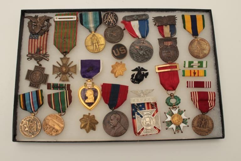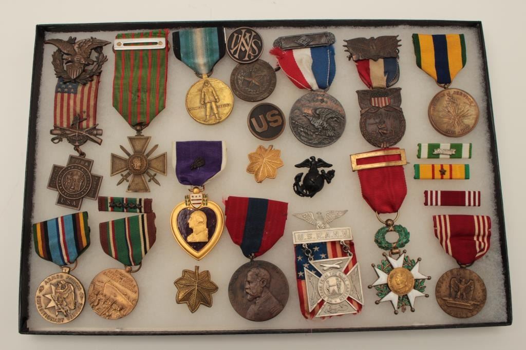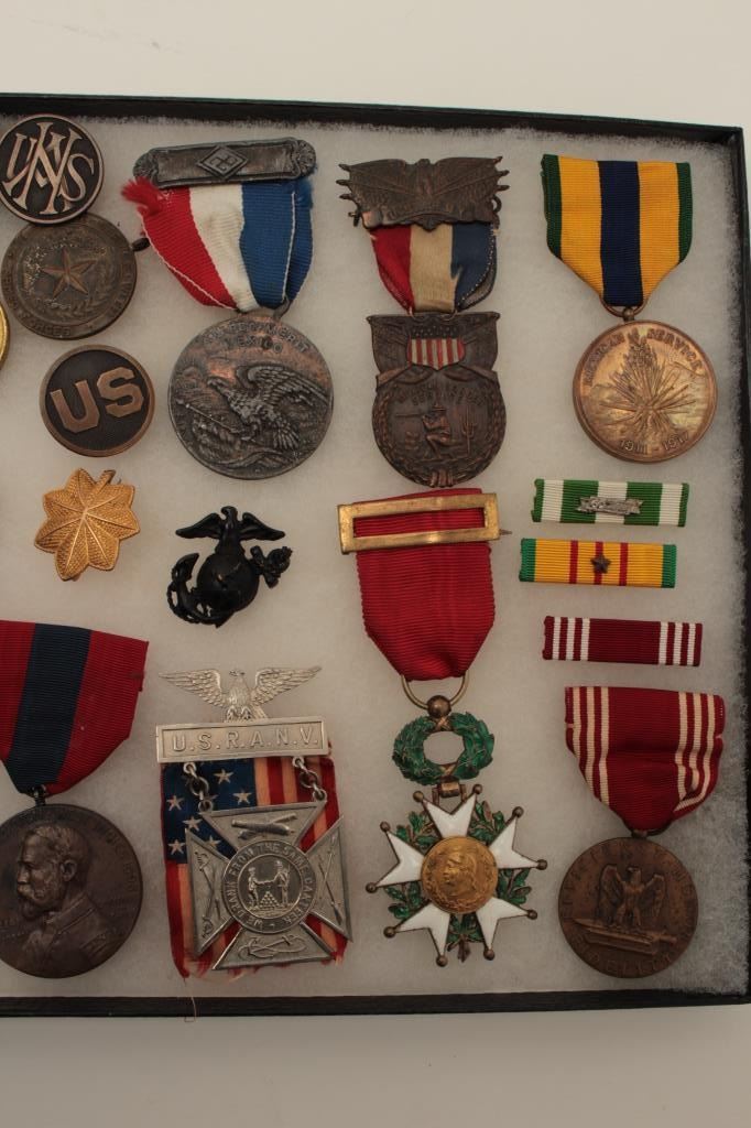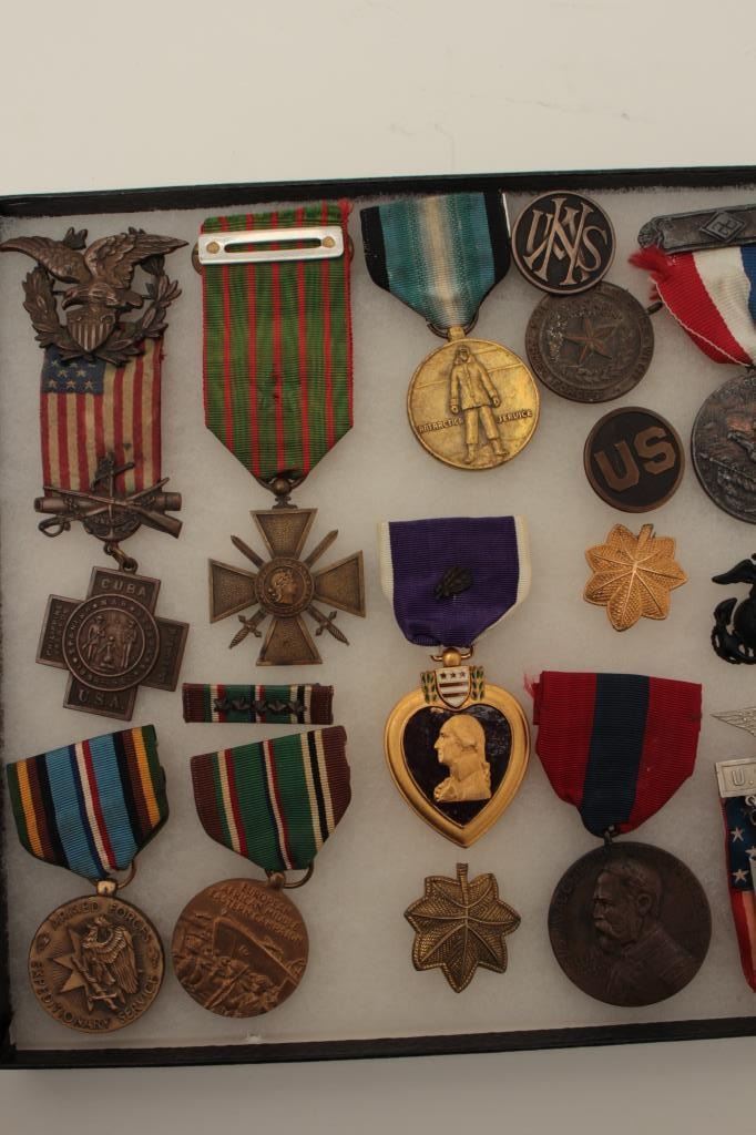 Riker case of approximately 14 collector military medals, mostly U.S., several scarce Mexican Border Service medals from the early 1900’s, a rare Antarctica Service Medal, etc. Est.: $150-$300.