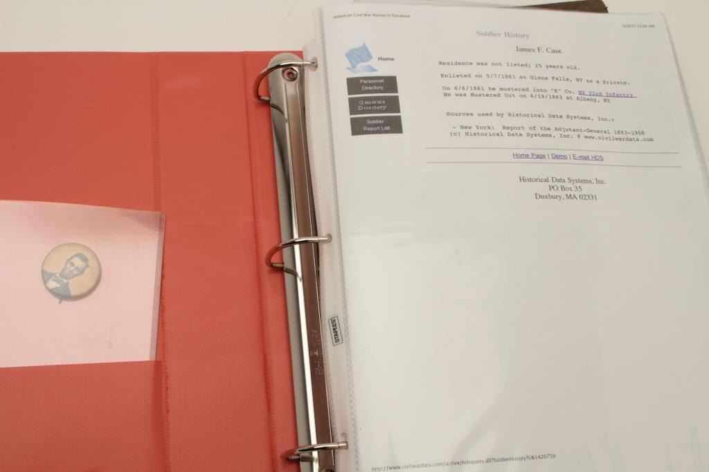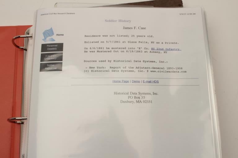 Lot 506 Three ring binder of photos and information on Civil War Veteran James F. Case, Co. E, 22nd N.Y. I