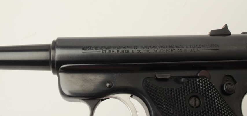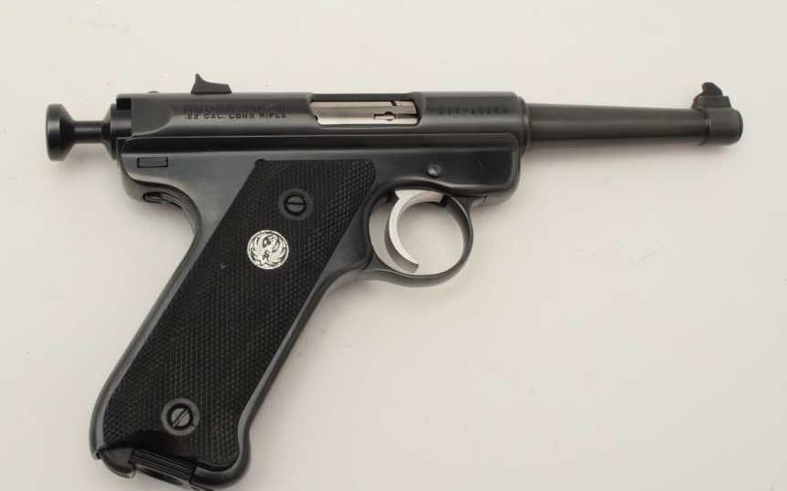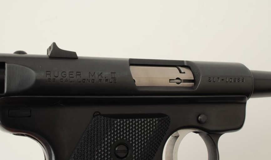 Lot 510 Ruger MK II semi-automatic pistol, .22LR caliber, 4.5” barrel, blued finish, checkered black medal