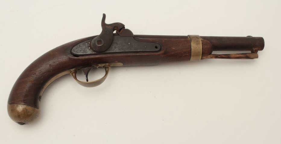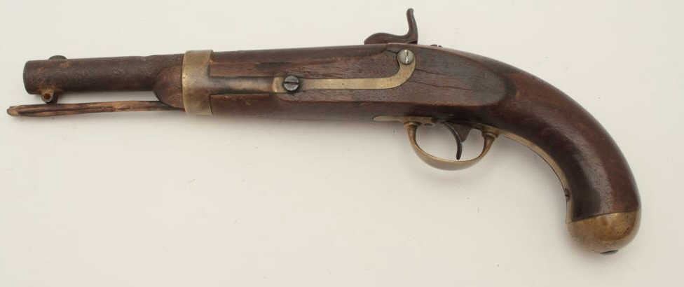 Lot 522 H. Aston percussion martial pistol dated 1847 (Mexican War era); brass mountings, working action,