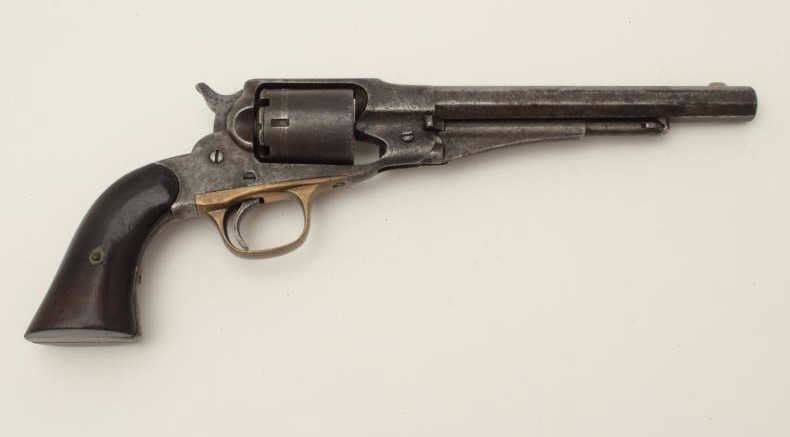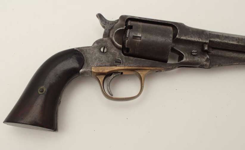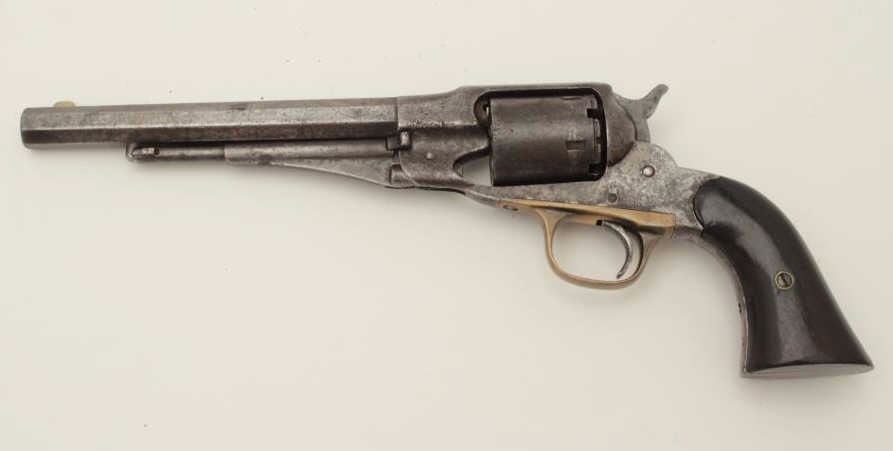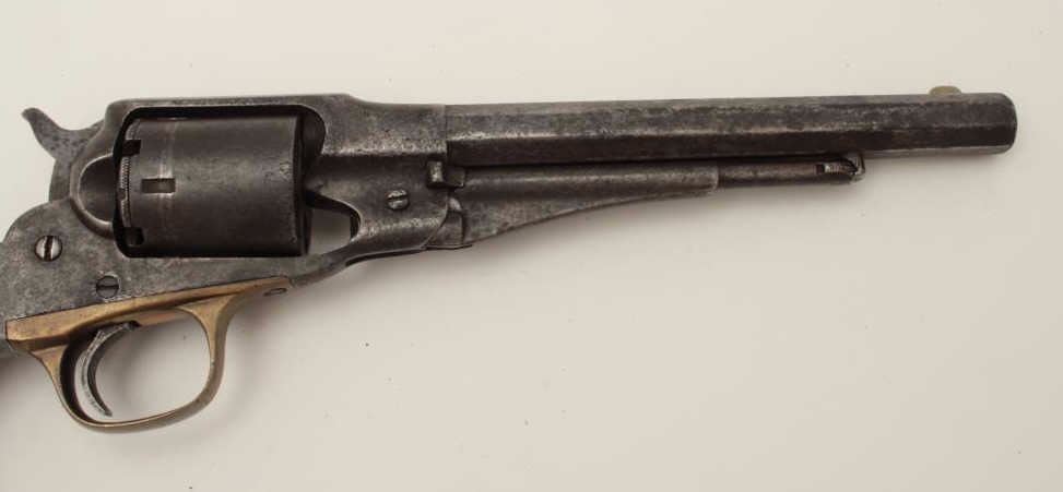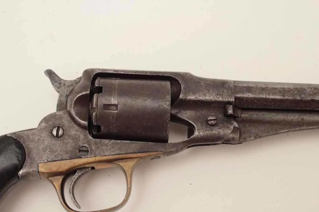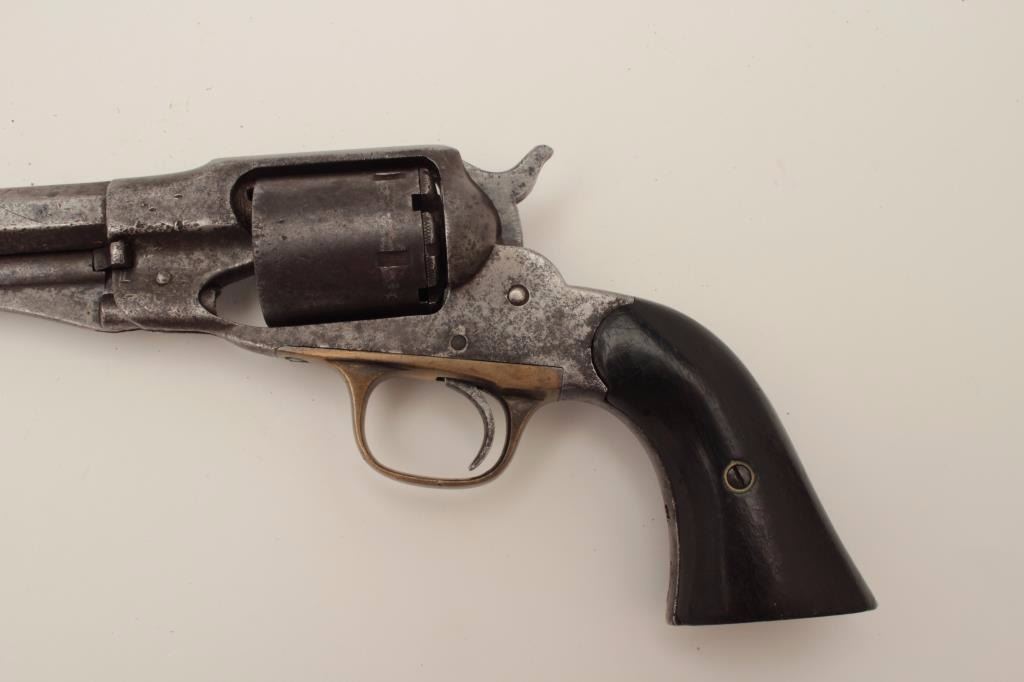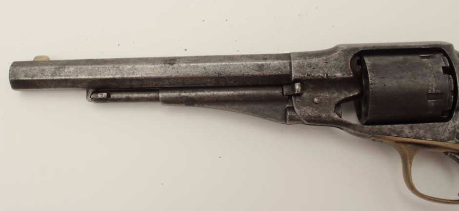 Lot 524 Remington New Model Police 6.5” long barrel conversion, .38RF caliber, dark patina and scattered p