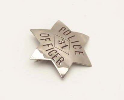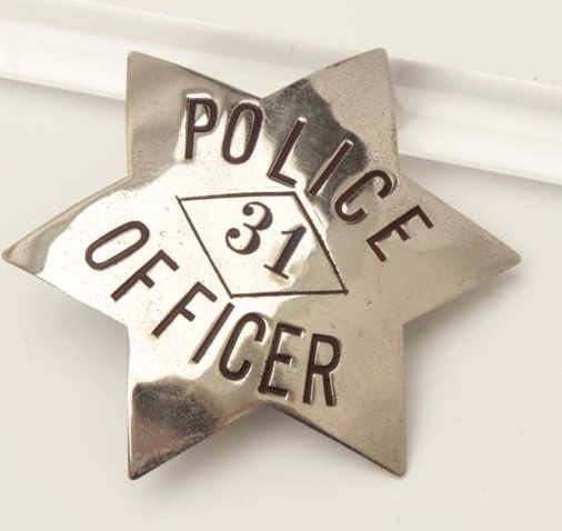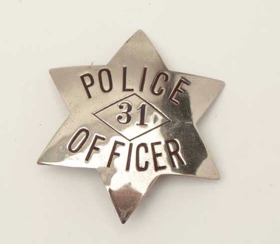 Old stock 6-point badge marked “Police Officer 31”; no hallmarks on reverse. Est.: $75-$125.