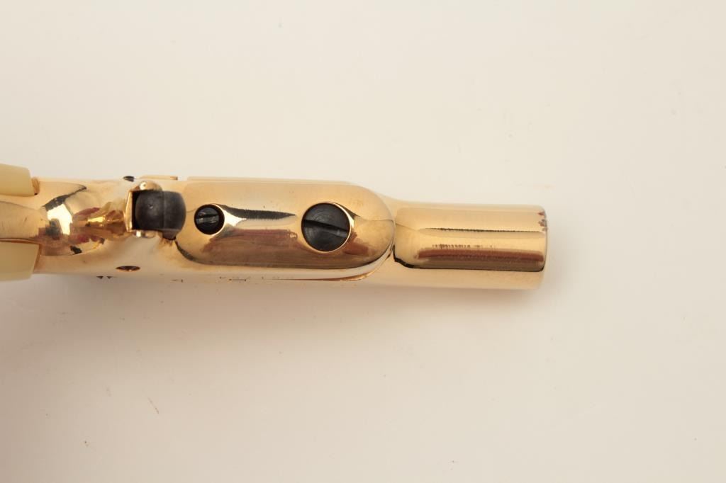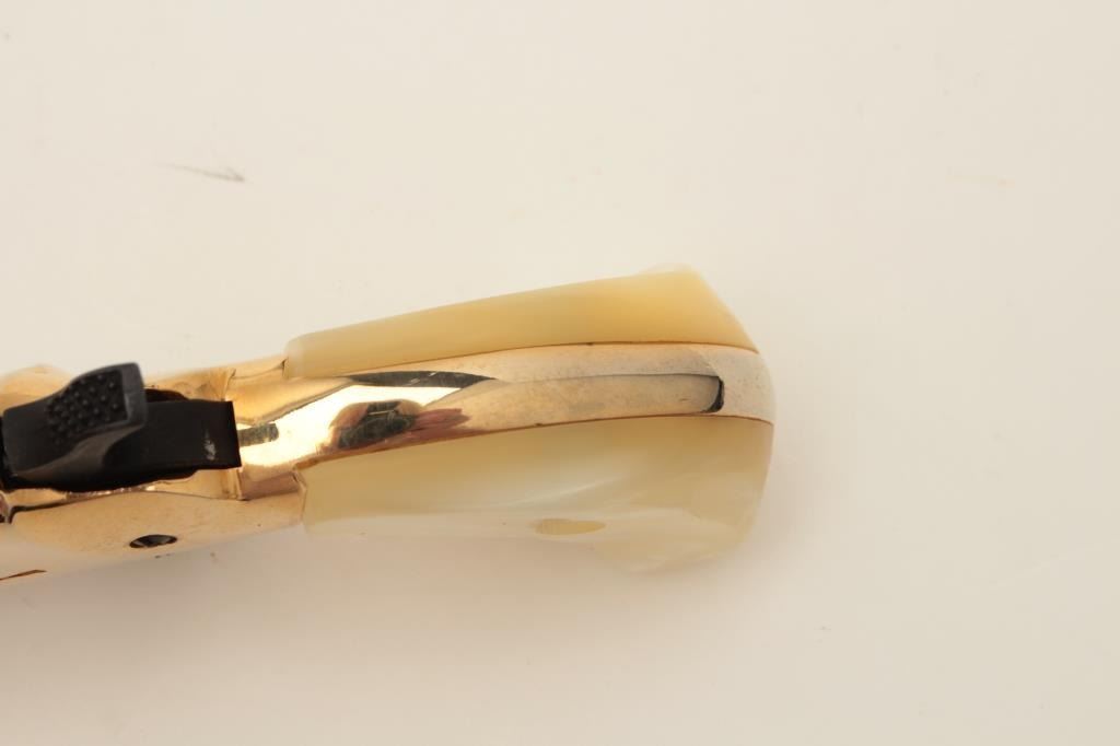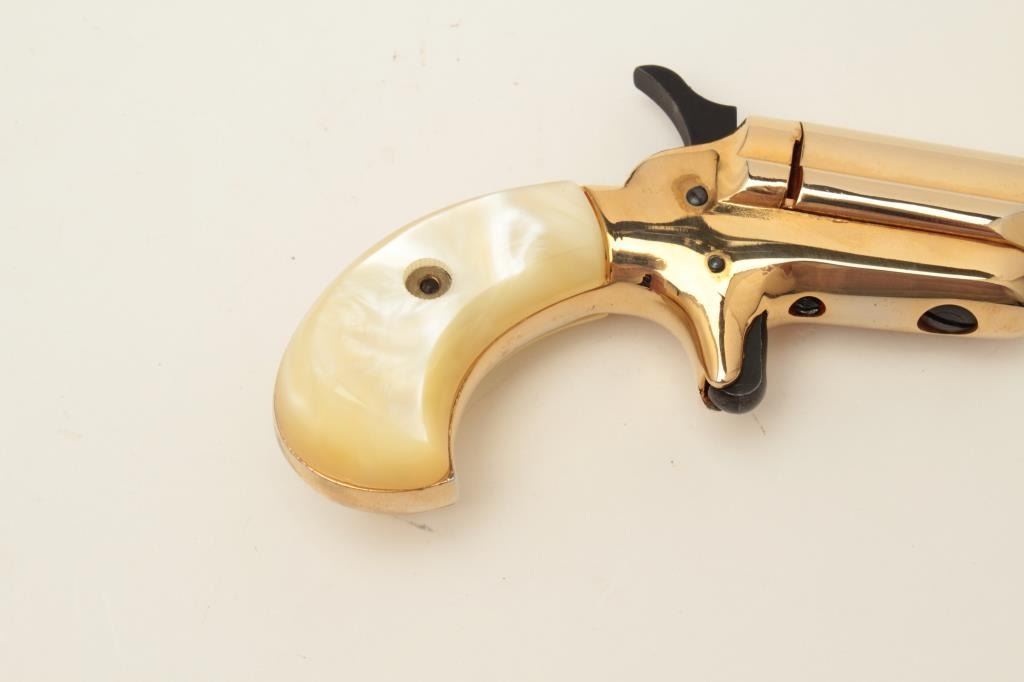 Lot 539 Butler blackpowder single shot derringer, .31 caliber, gold finish, faux pearl grips, S/N B81764,