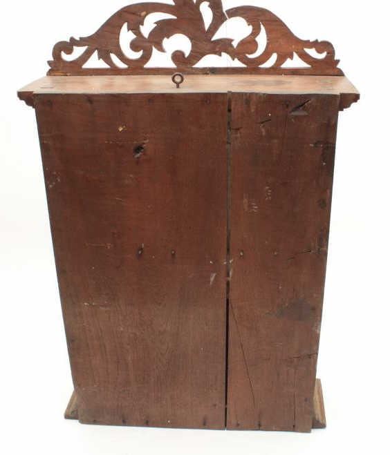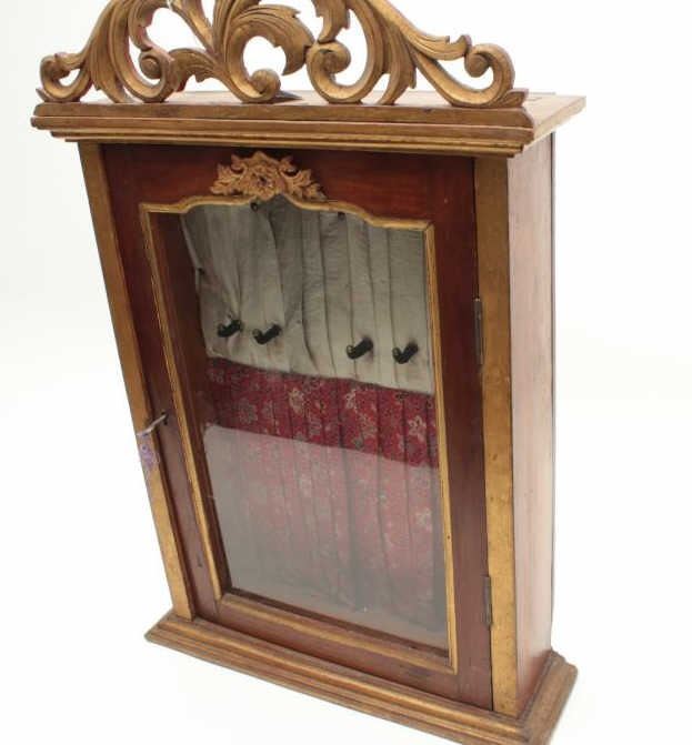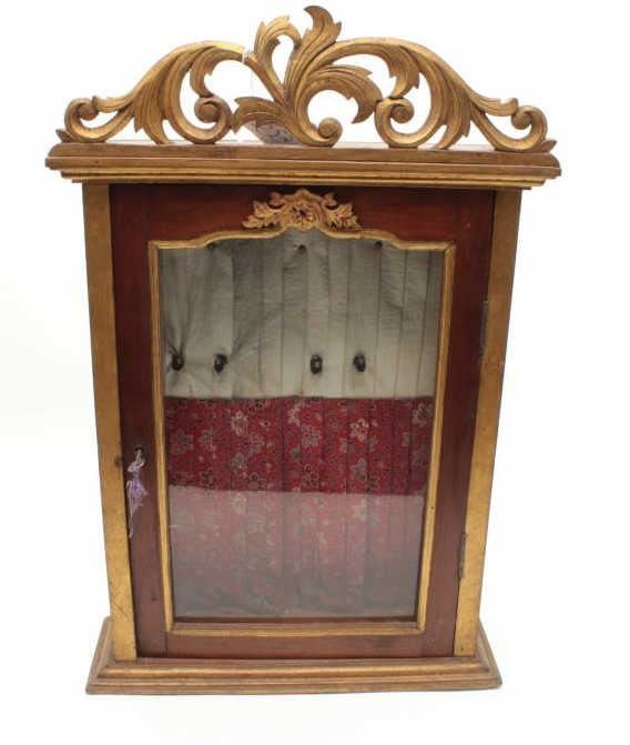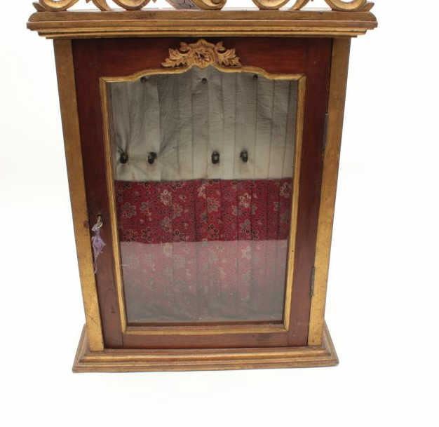 Lot 553 Antique wood and glass showcase for wall to possibly display Japanese tanto’s showing a red floral