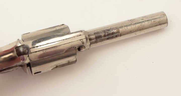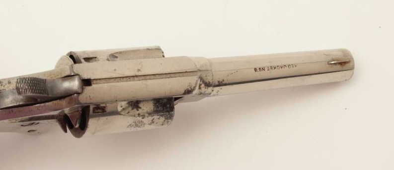 Lot 566 Red Jacket No. 6 spur trigger revolver, .30 caliber, 2.75” barrel, nickel finish, wood grips, S/N