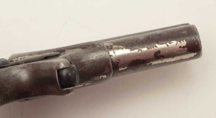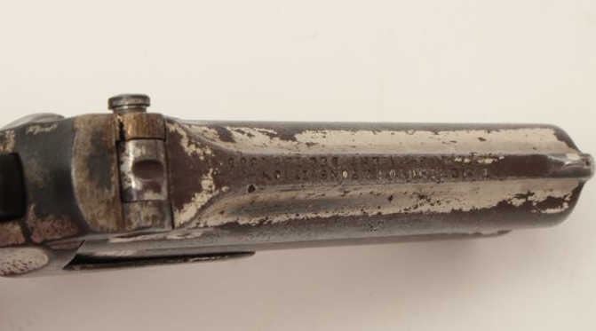 Lot 569 Remington O/U derringer, 2 line address, .41 caliber, S/N 88, repaired hinge, nickel finish, check